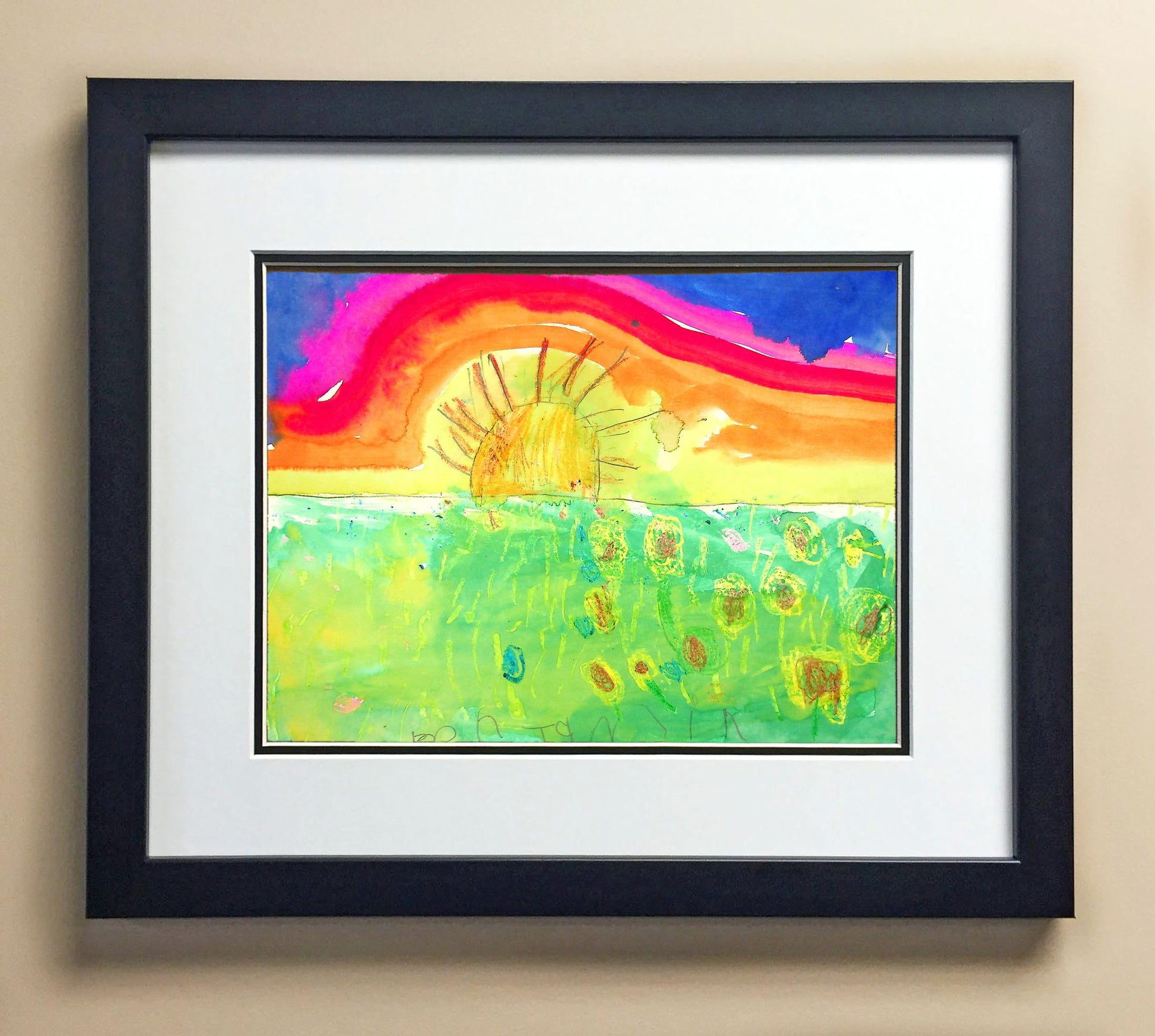 Included with the purchase is the Students Artwork, Frame, double matboard, shatter proof plexiglass, and a ready to hang backerboard with turnbuttons