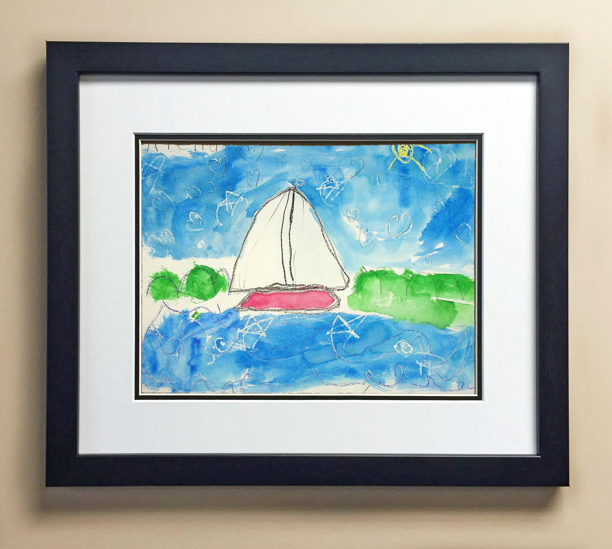 Included with the purchase is the Students Artwork, Frame, double matboard, shatter proof plexiglass, and a ready to hang backerboard with turnbuttons