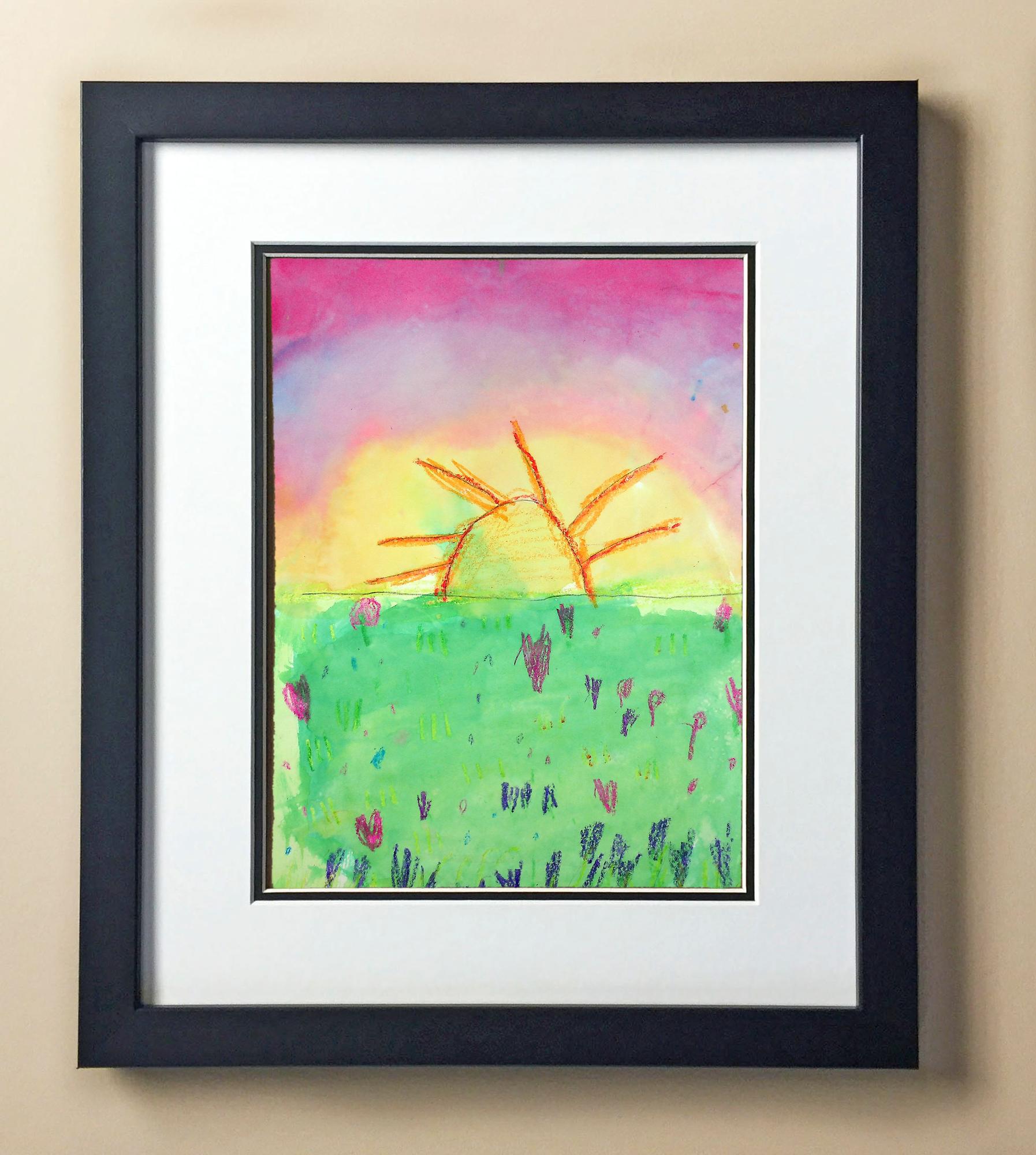 Included with the purchase is the Students Artwork, Frame, double matboard, shatter proof plexiglass, and a ready to hang backerboard with turnbuttons