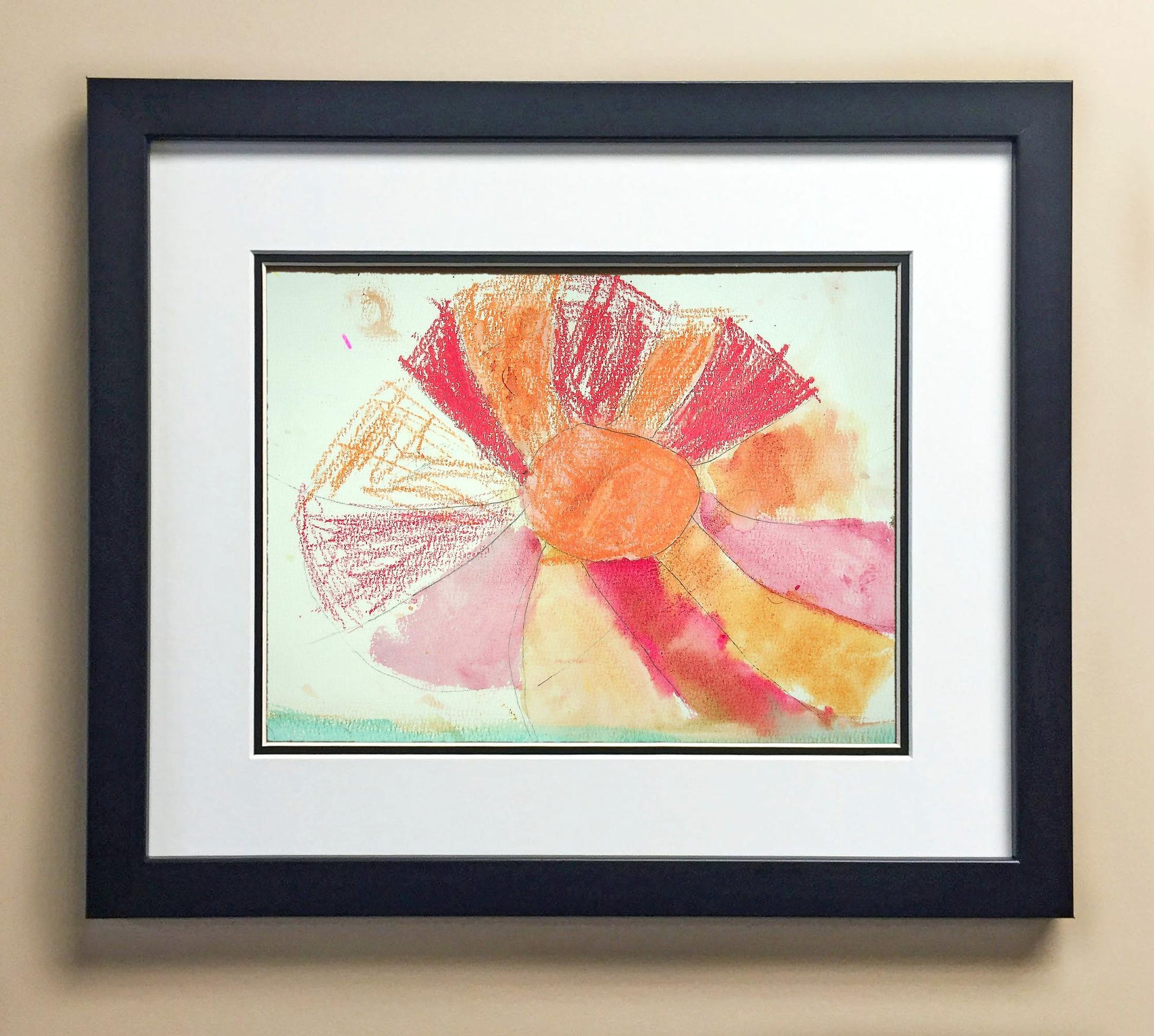 Included with the purchase is the Students Artwork, Frame, double matboard, shatter proof plexiglass, and a ready to hang backerboard with turnbuttons