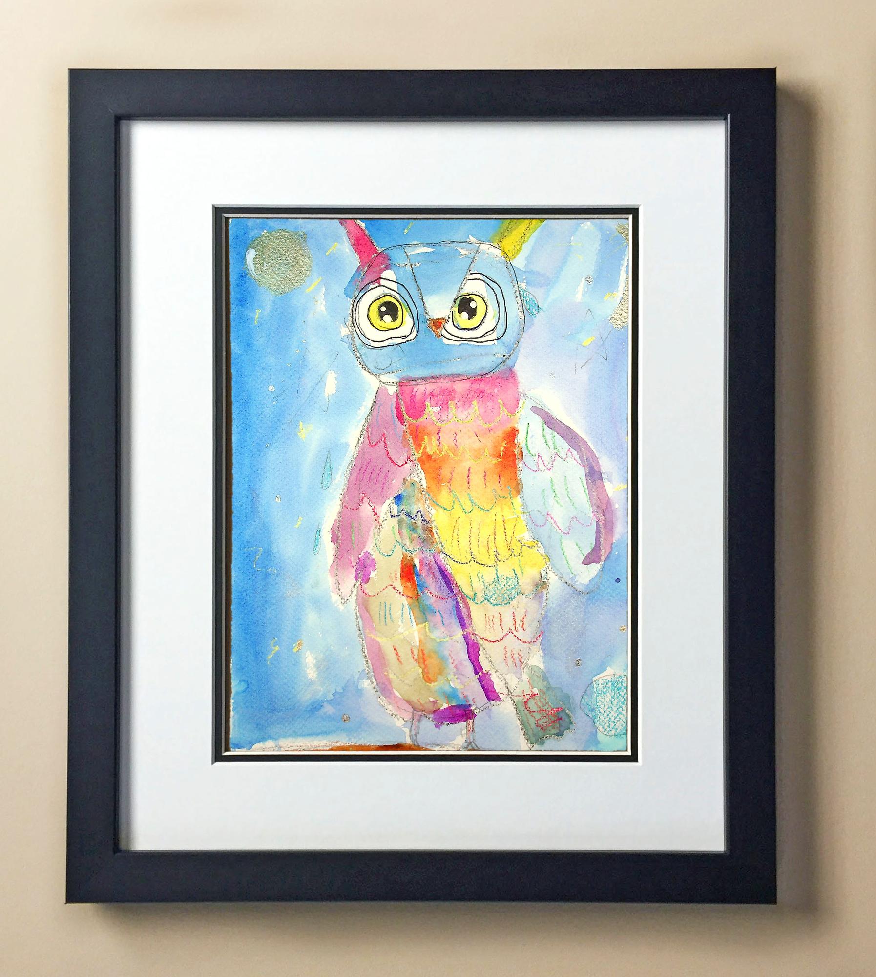 Included with the purchase is the Students Artwork, Frame, double matboard, shatter proof plexiglass, and a ready to hang backerboard with turnbuttons