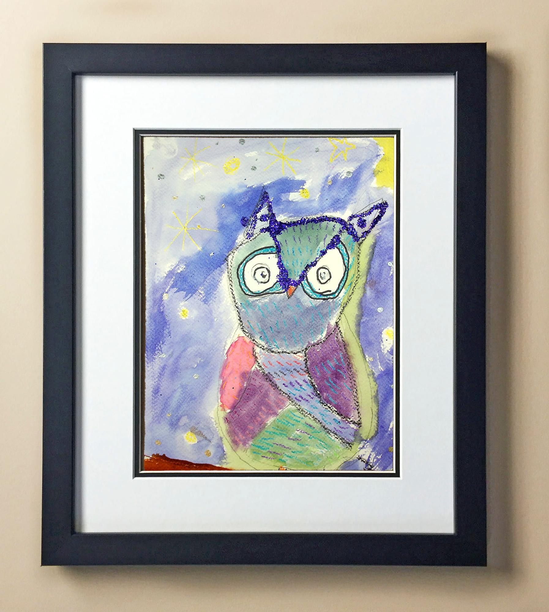 Included with the purchase is the Students Artwork, Frame, double matboard, shatter proof plexiglass, and a ready to hang backerboard with turnbuttons