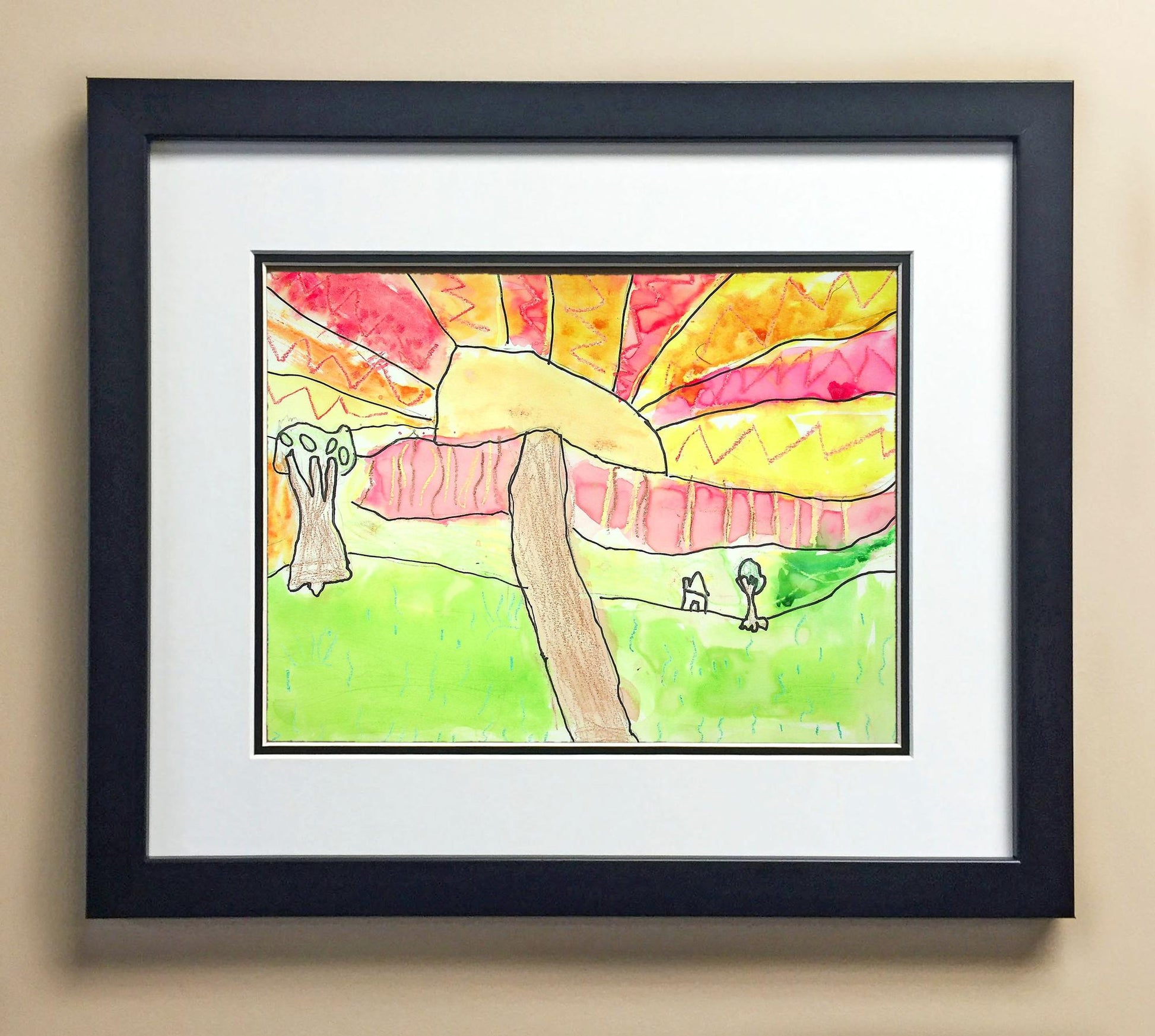 Included with the purchase is the Students Artwork, Frame, double matboard, shatter proof plexiglass, and a ready to hang backerboard with turnbuttons