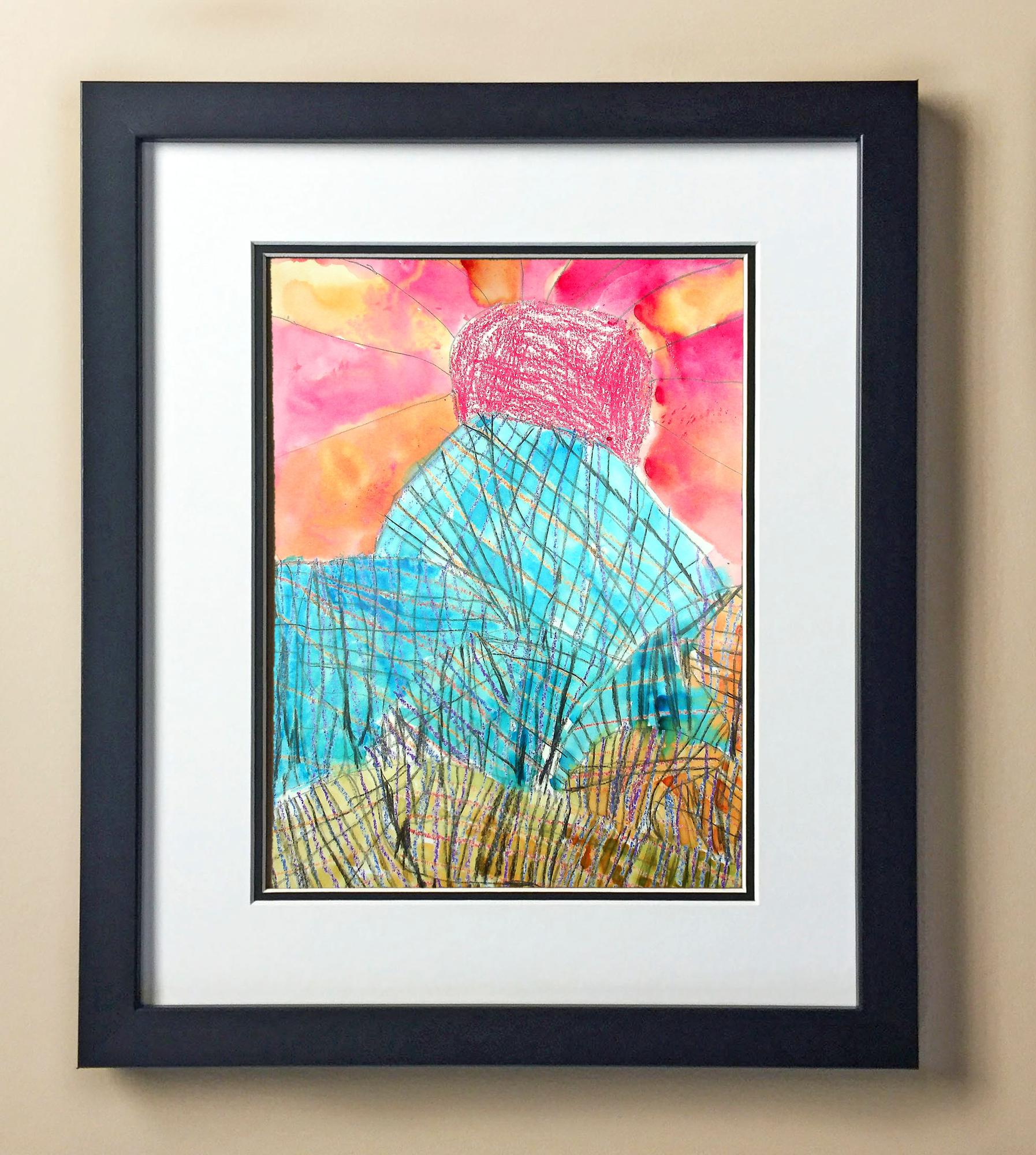Included with the purchase is the Students Artwork, Frame, double matboard, shatter proof plexiglass, and a ready to hang backerboard with turnbuttons