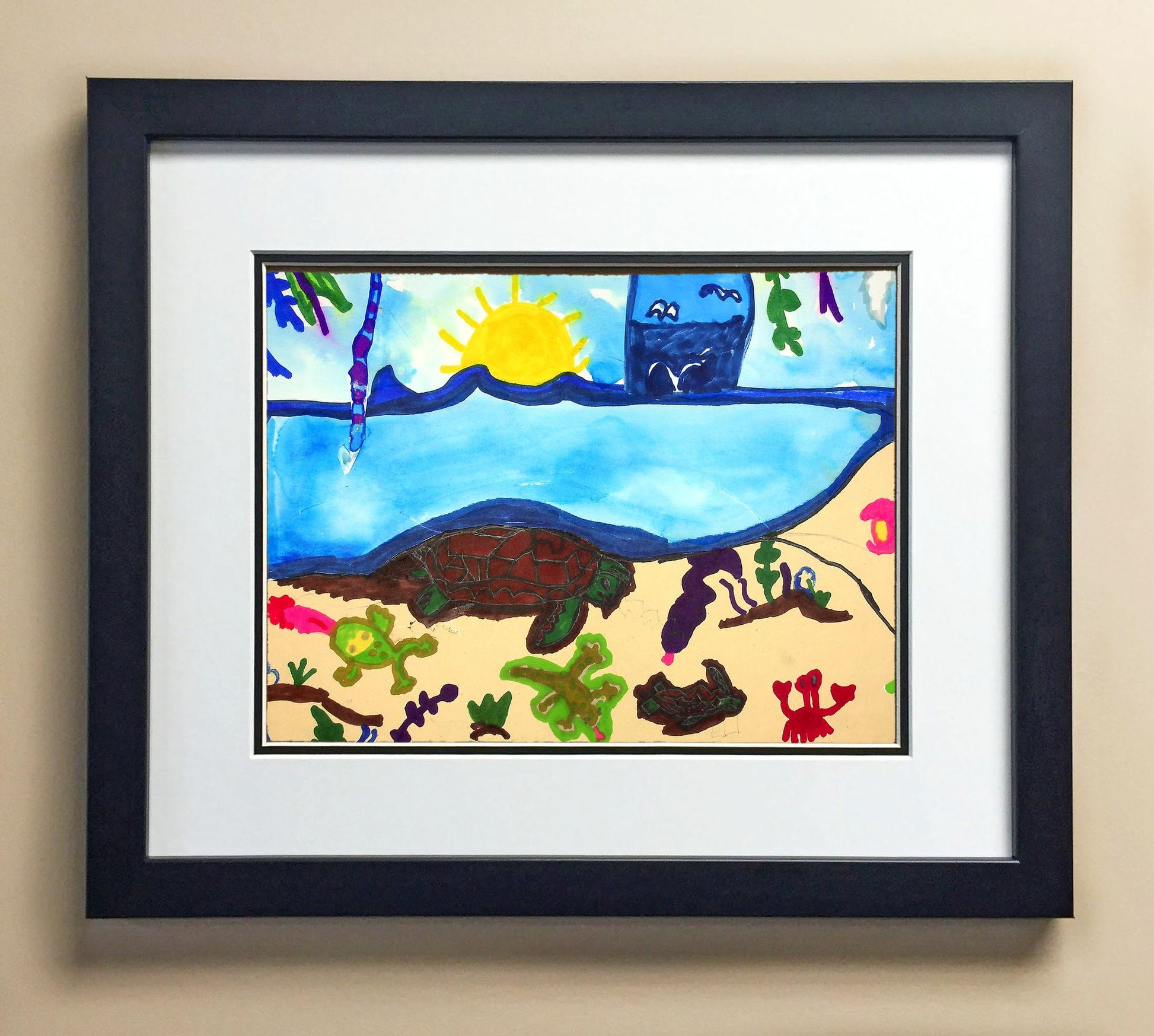 Included with the purchase is the Students Artwork, Frame, double matboard, shatter proof plexiglass, and a ready to hang backerboard with turnbuttons