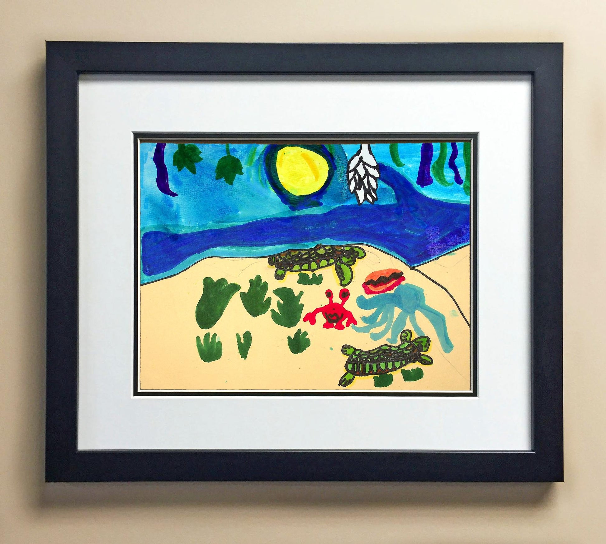 Included with the purchase is the Students Artwork, Frame, double matboard, shatter proof plexiglass, and a ready to hang backerboard with turnbuttons