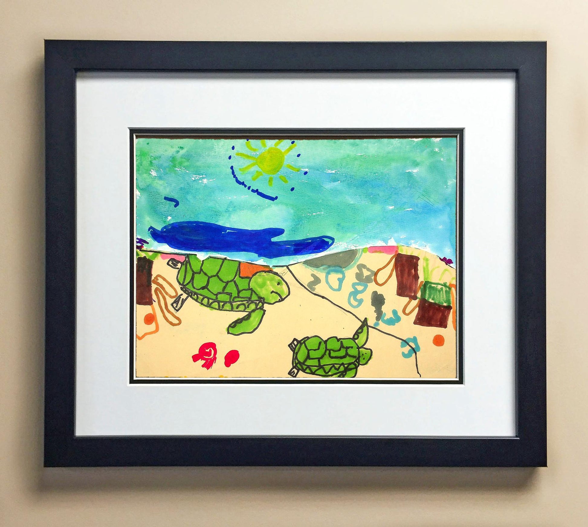 Included with the purchase is the Students Artwork, Frame, double matboard, shatter proof plexiglass, and a ready to hang backerboard with turnbuttons