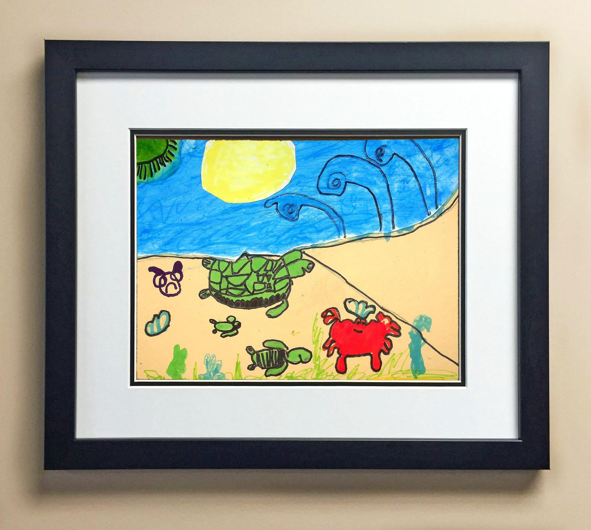 Included with the purchase is the Students Artwork, Frame, double matboard, shatter proof plexiglass, and a ready to hang backerboard with turnbuttons