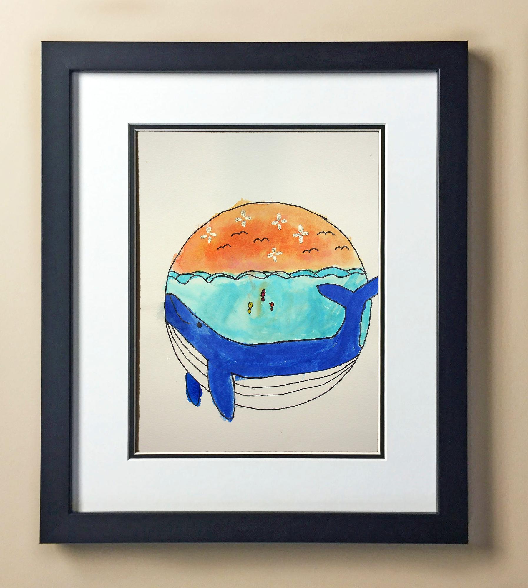 Included with the purchase is the Students Artwork, Frame, double matboard, shatter proof plexiglass, and a ready to hang backerboard with turnbuttons