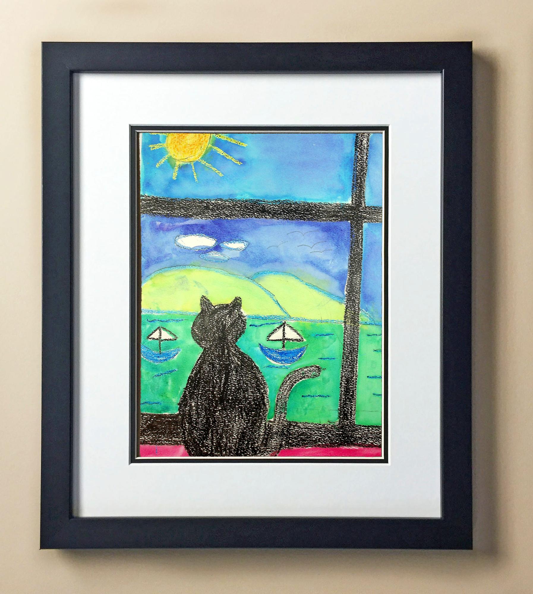 Included with the purchase is the Students Artwork, Frame, double matboard, shatter proof plexiglass, and a ready to hang backerboard with turnbuttons