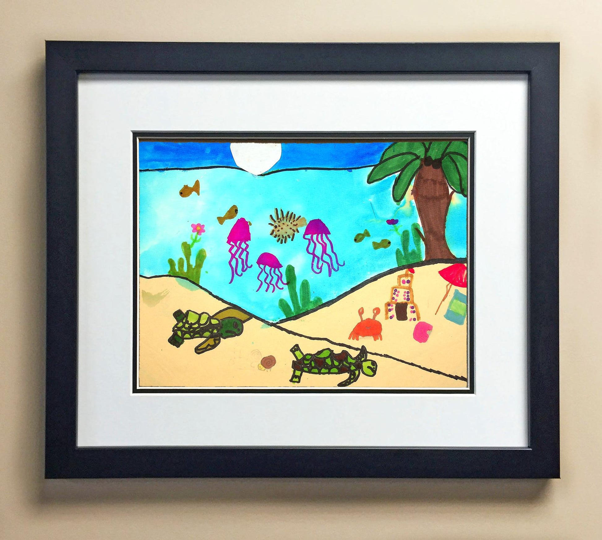 Included with the purchase is the Students Artwork, Frame, double matboard, shatter proof plexiglass, and a ready to hang backerboard with turnbuttons