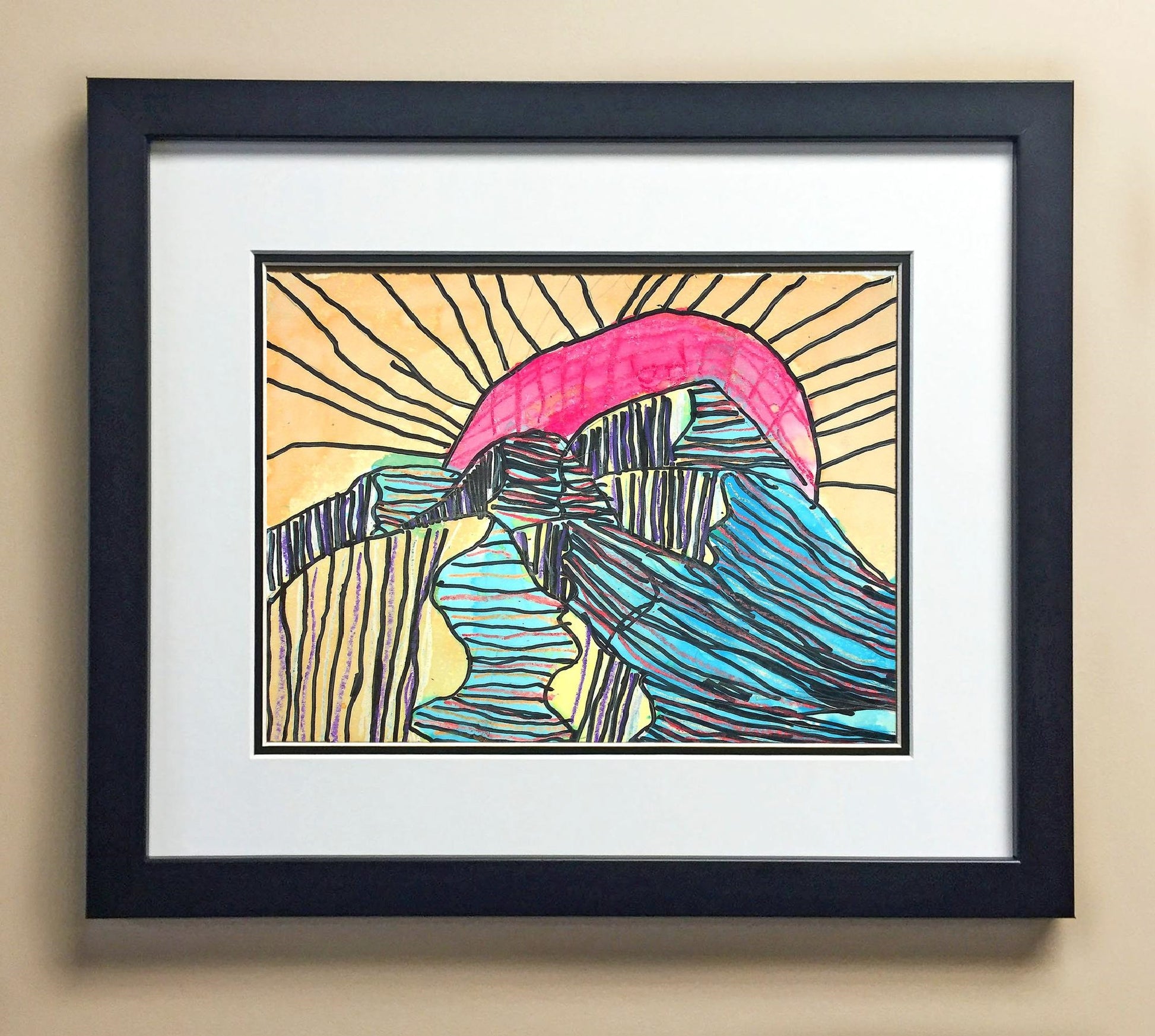 Included with the purchase is the Students Artwork, Frame, double matboard, shatter proof plexiglass, and a ready to hang backerboard with turnbuttons
