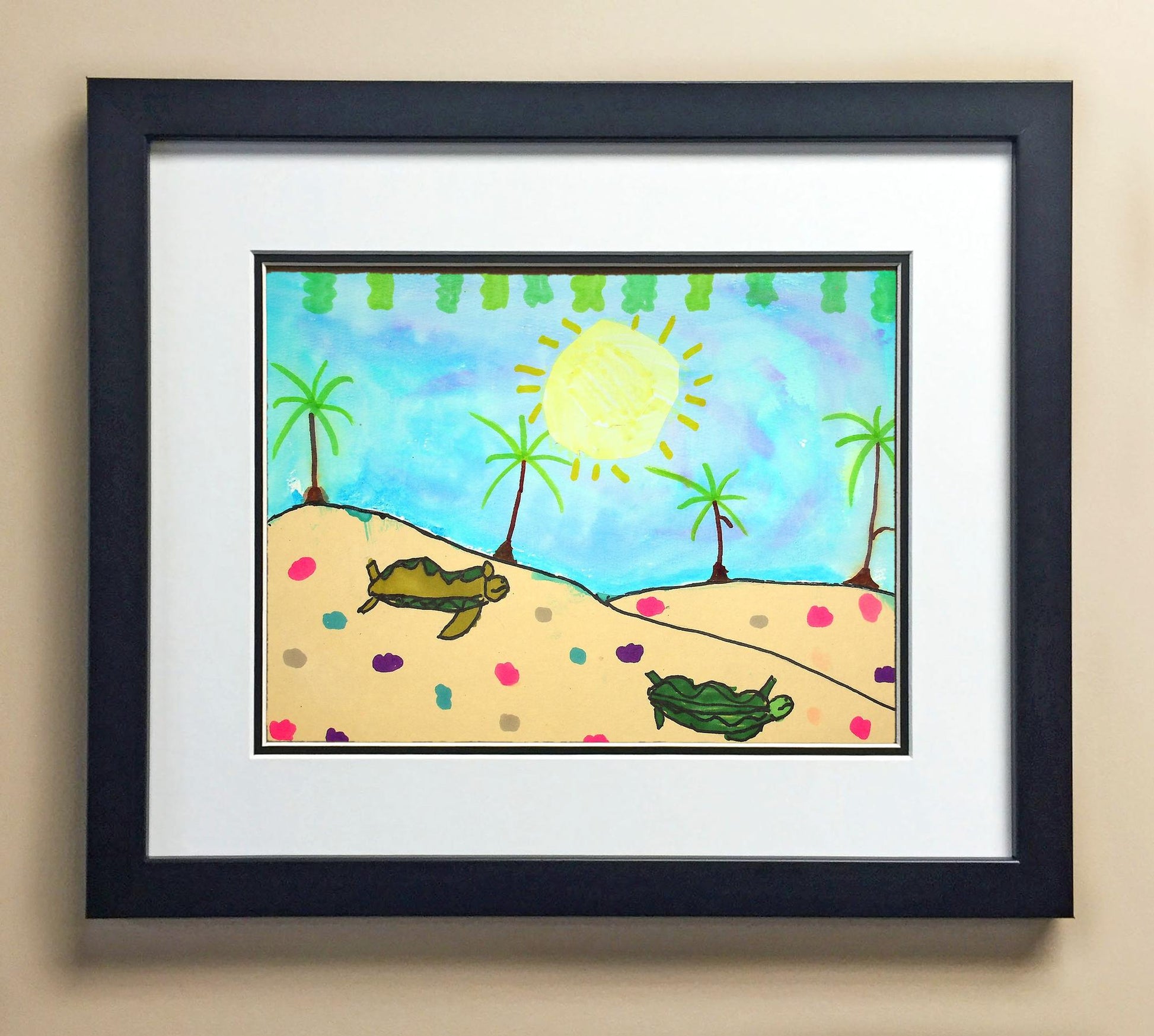 Included with the purchase is the Students Artwork, Frame, double matboard, shatter proof plexiglass, and a ready to hang backerboard with turnbuttons