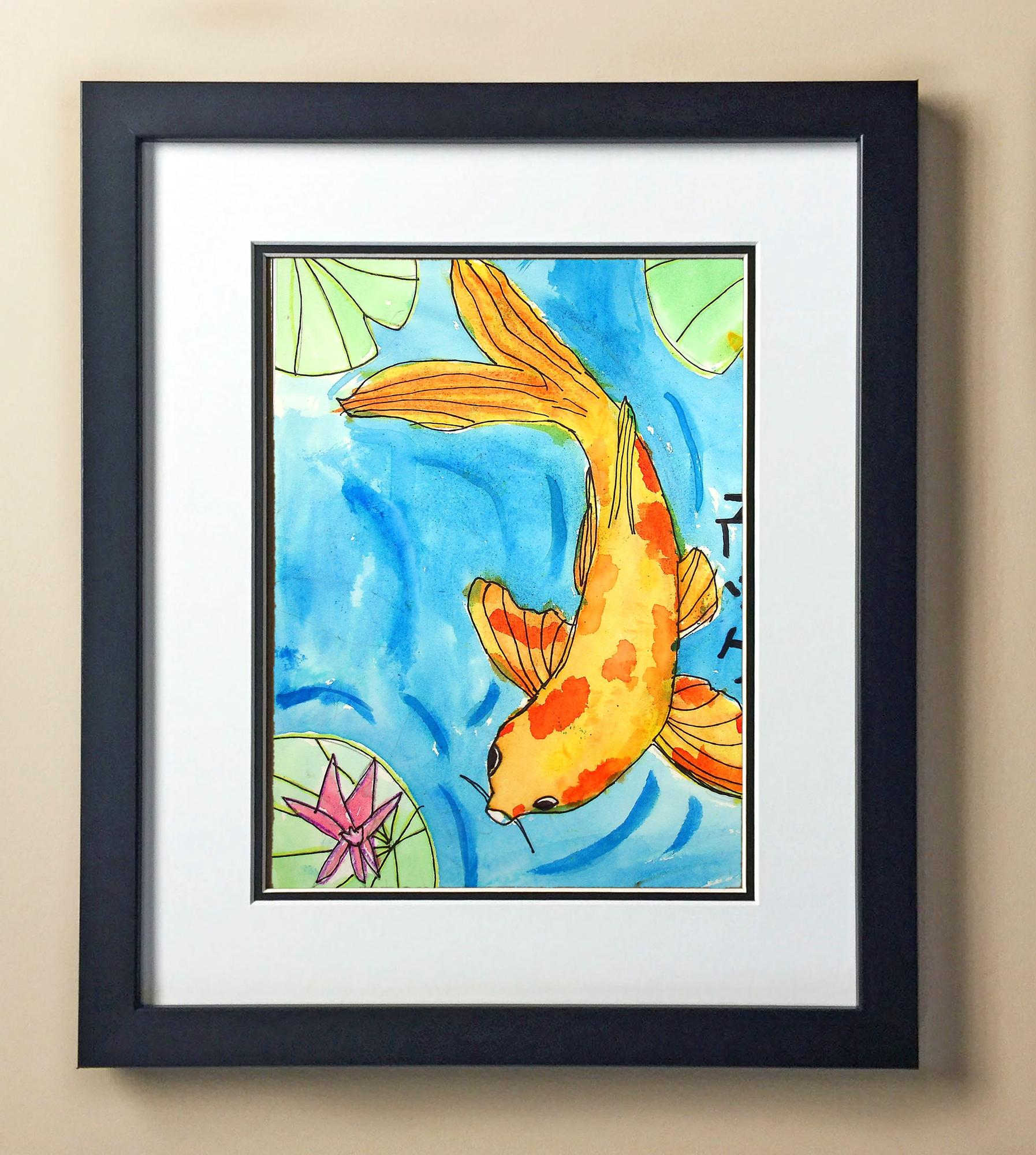 Included with the purchase is the Students Artwork, Frame, double matboard, shatter proof plexiglass, and a ready to hang backerboard with turnbuttons