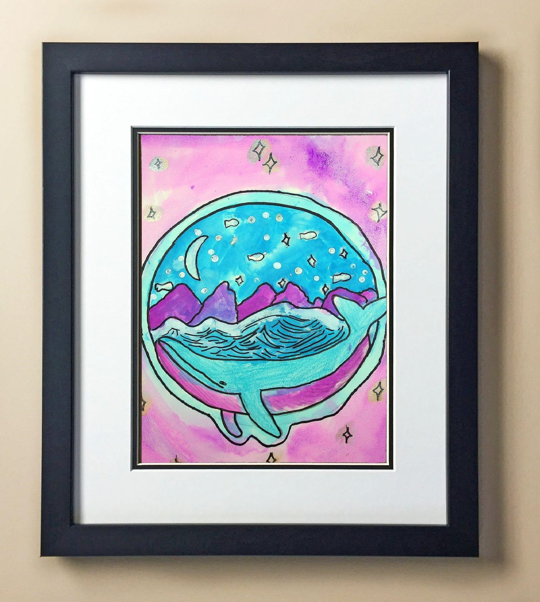 Included with the purchase is the Students Artwork, Frame, double matboard, shatter proof plexiglass, and a ready to hang backerboard with turnbuttons