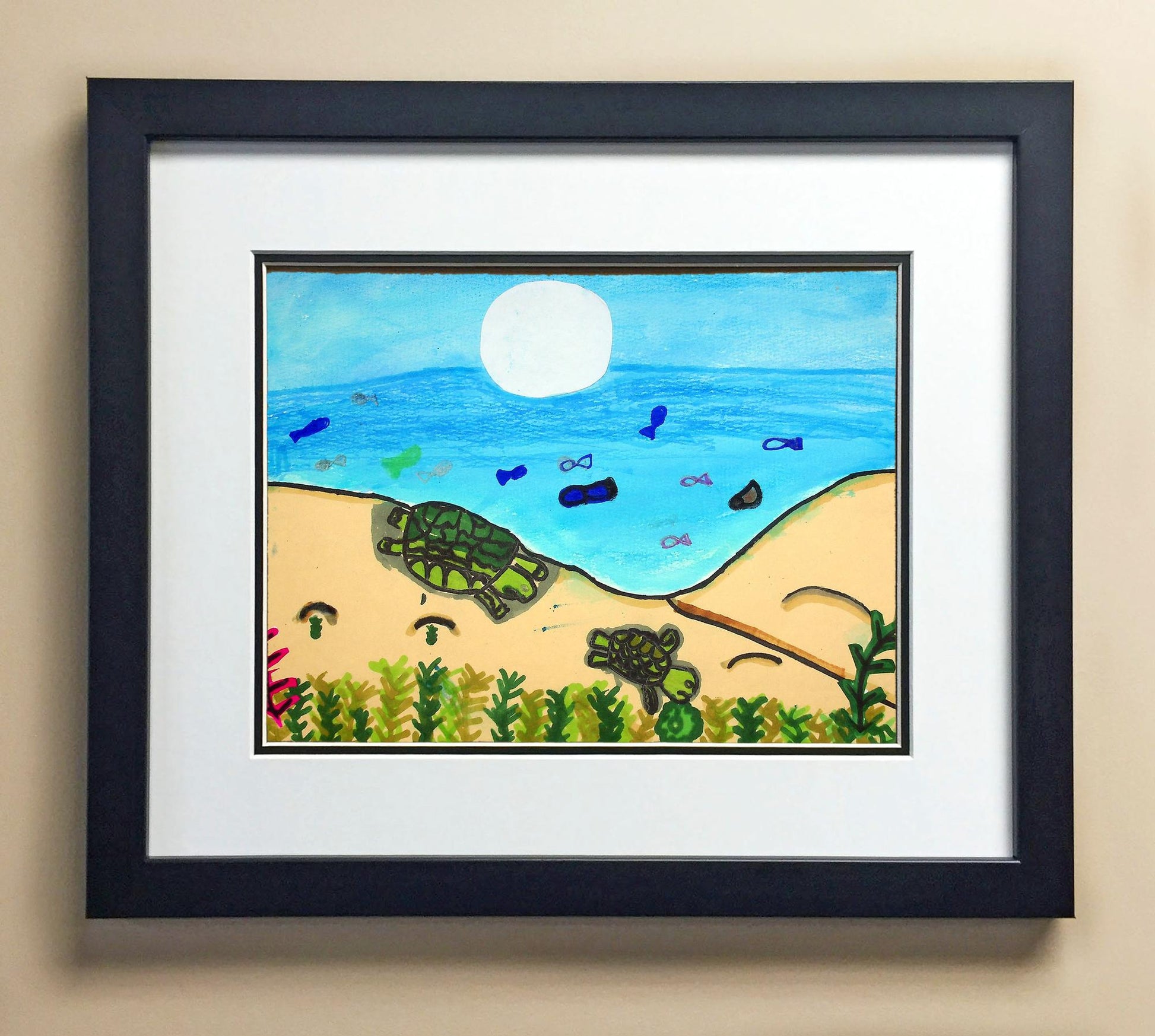 Included with the purchase is the Students Artwork, Frame, double matboard, shatter proof plexiglass, and a ready to hang backerboard with turnbuttons