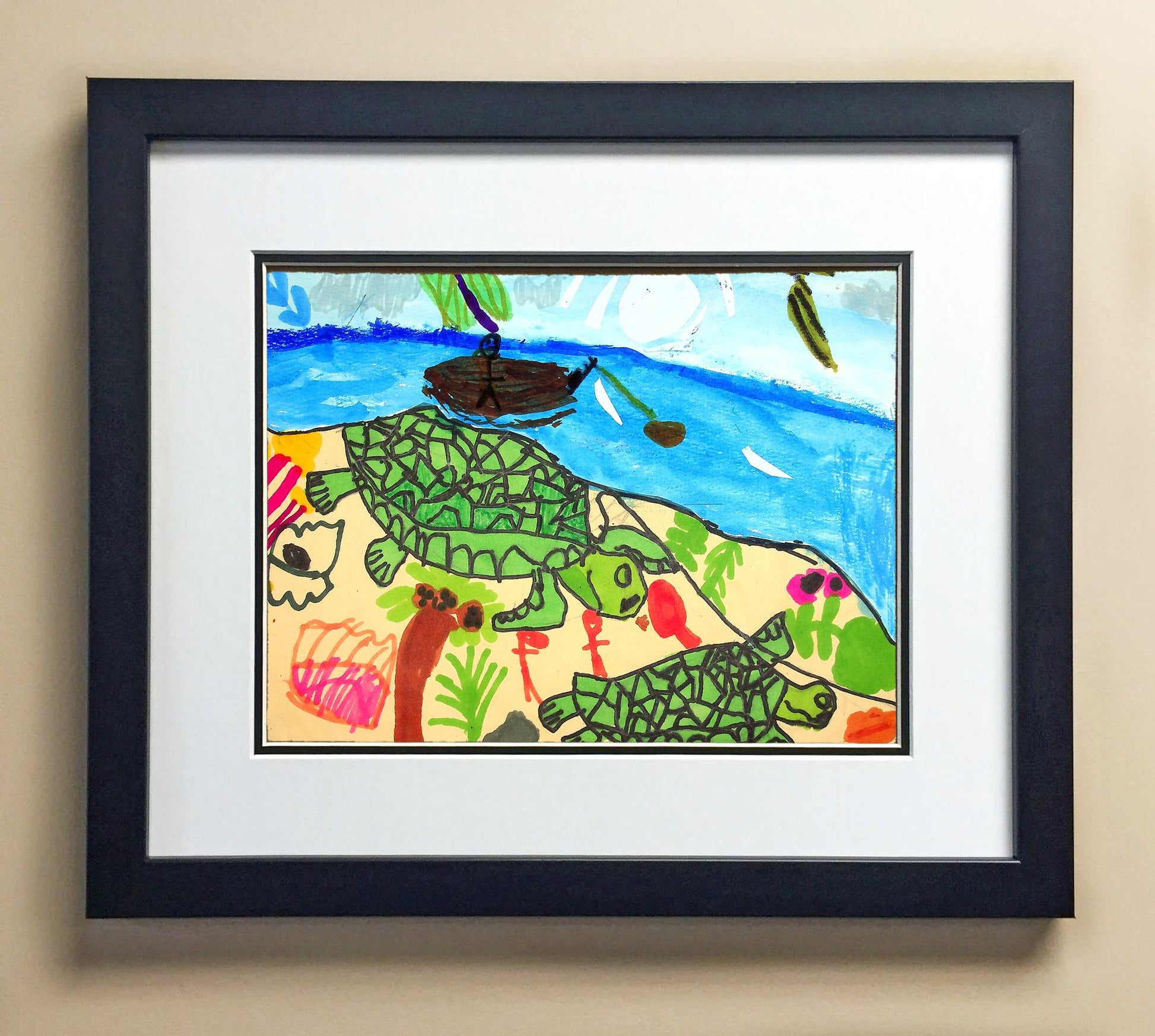 Included with the purchase is the Students Artwork, Frame, double matboard, shatter proof plexiglass, and a ready to hang backerboard with turnbuttons