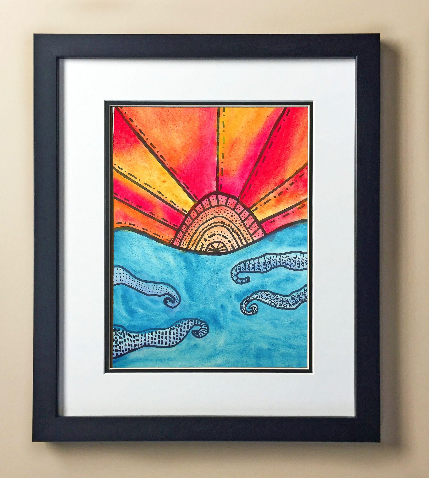 Included with the purchase is the Students Artwork, Frame, double matboard, shatter proof plexiglass, and a ready to hang backerboard with turnbuttons