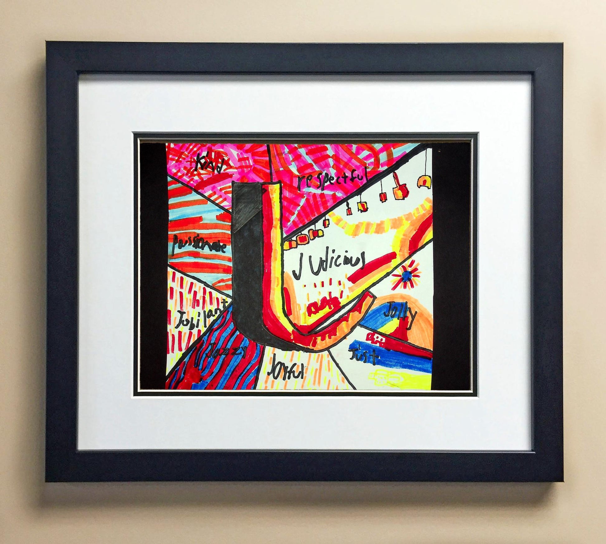 Included with the purchase is the Students Artwork, Frame, double matboard, shatter proof plexiglass, and a ready to hang backerboard with turnbuttons