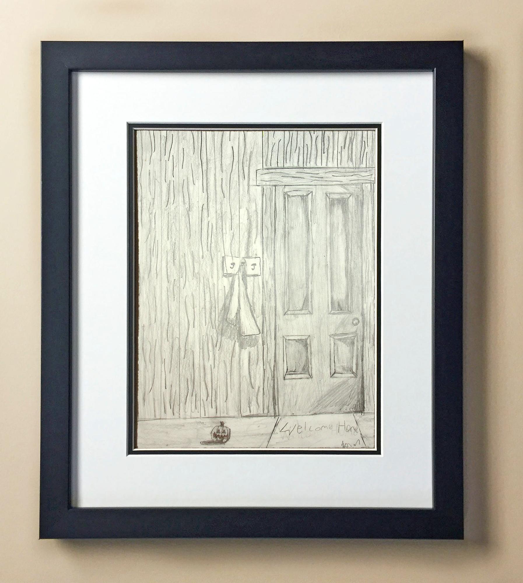 Included with the purchase is the Students Artwork, Frame, double matboard, shatter proof plexiglass, and a ready to hang backerboard with turnbuttons