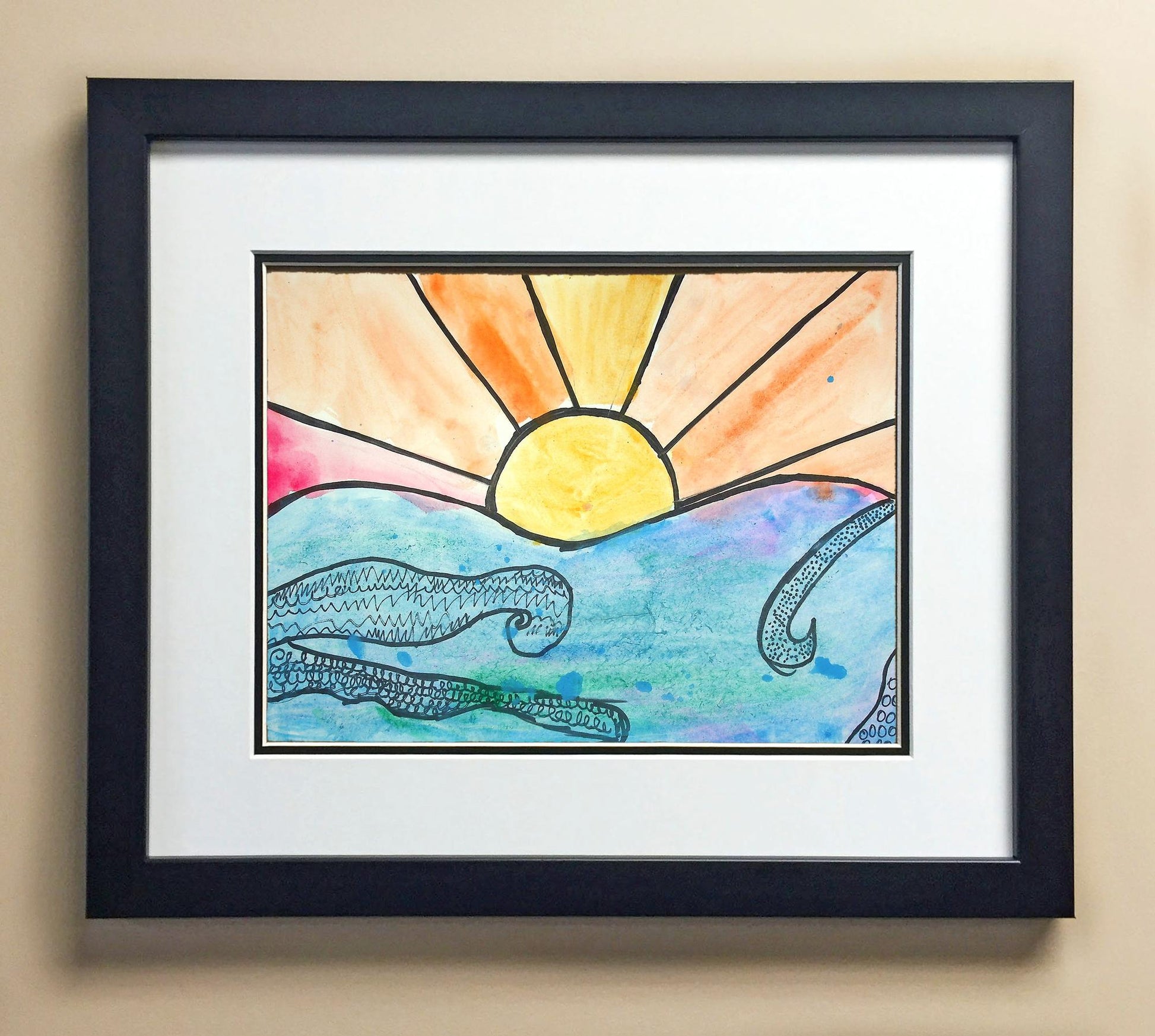 Included with the purchase is the Students Artwork, Frame, double matboard, shatter proof plexiglass, and a ready to hang backerboard with turnbuttons