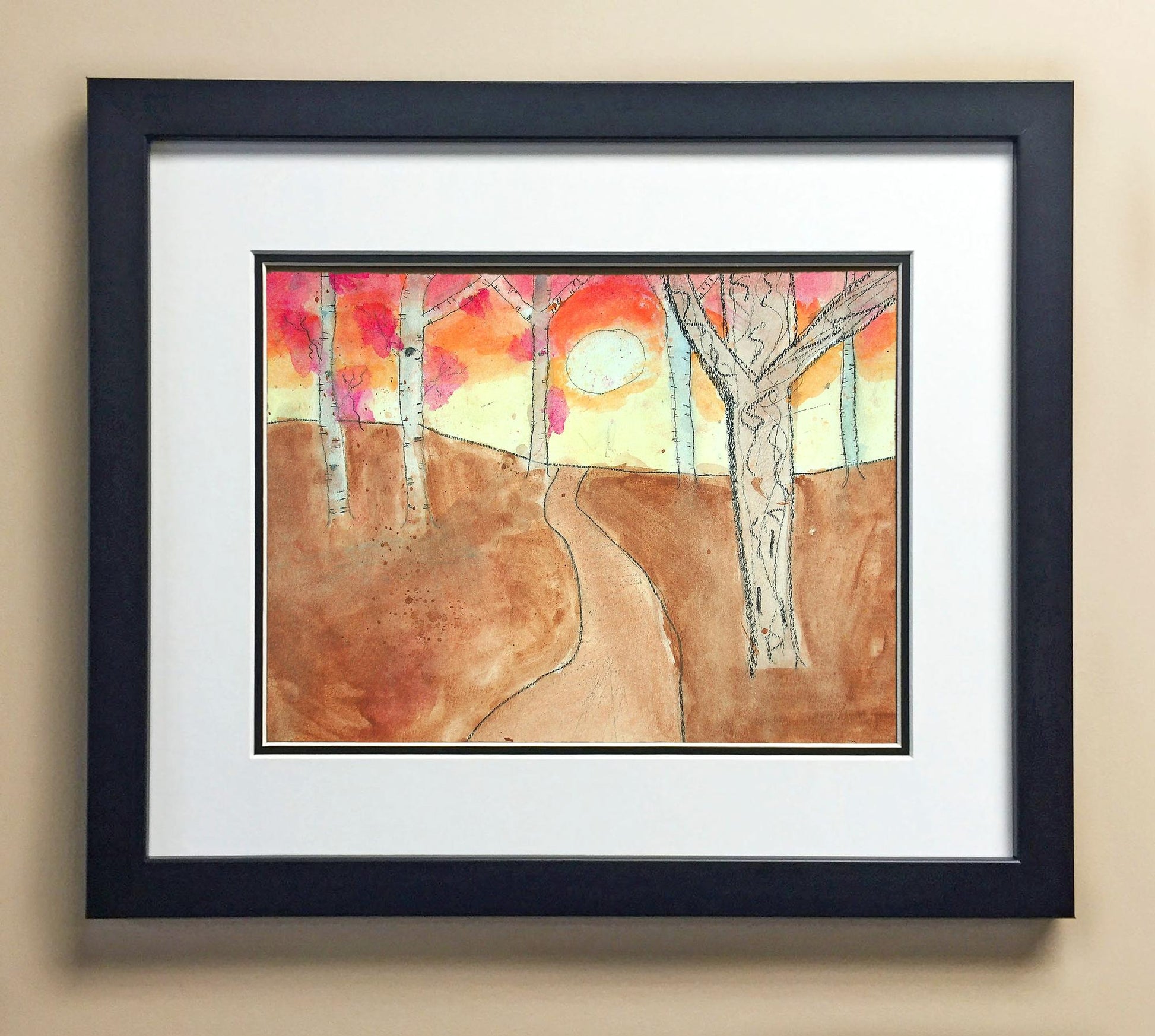 Included with the purchase is the Students Artwork, Frame, double matboard, shatter proof plexiglass, and a ready to hang backerboard with turnbuttons