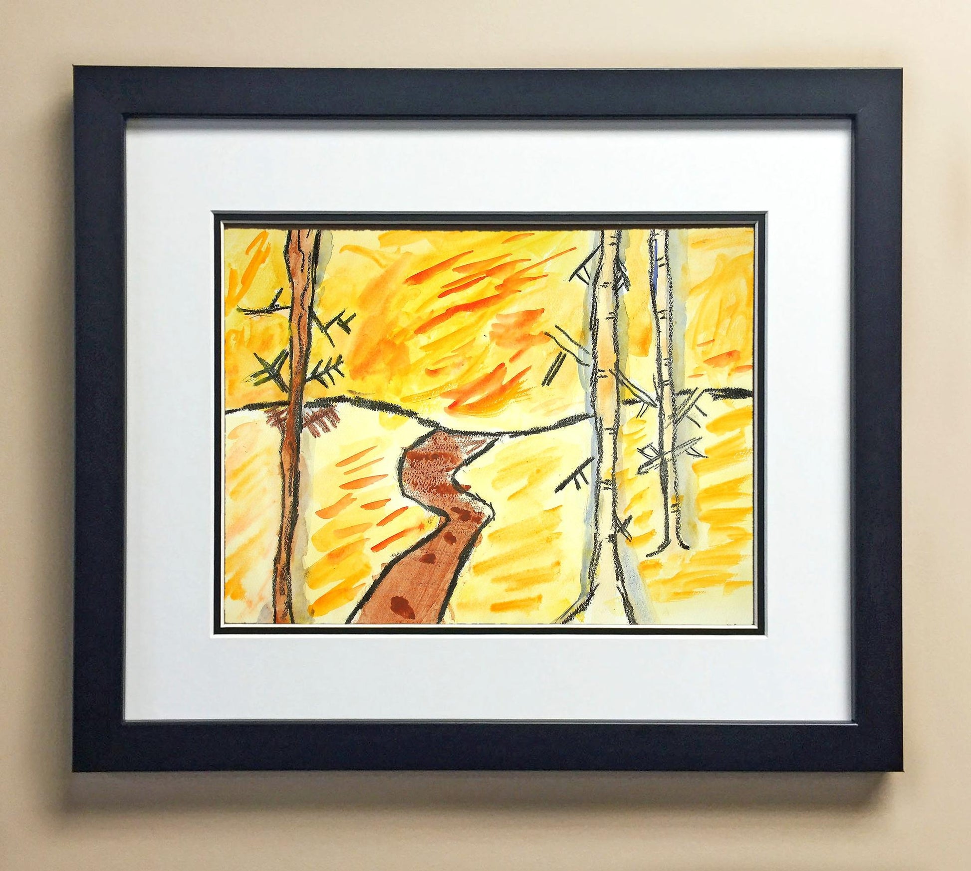 Included with the purchase is the Students Artwork, Frame, double matboard, shatter proof plexiglass, and a ready to hang backerboard with turnbuttons