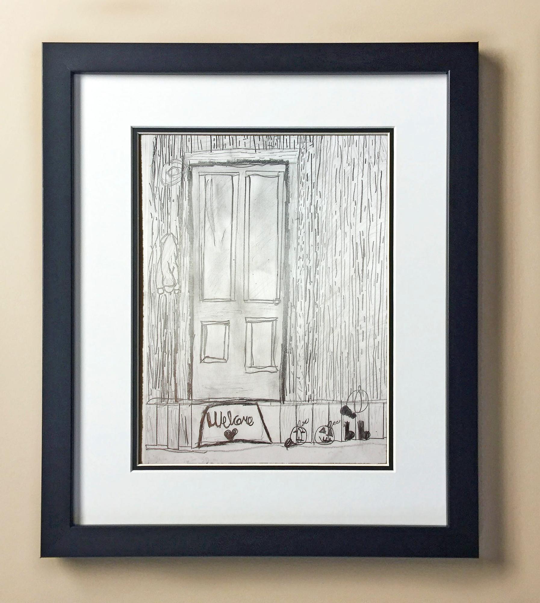Included with the purchase is the Students Artwork, Frame, double matboard, shatter proof plexiglass, and a ready to hang backerboard with turnbuttons
