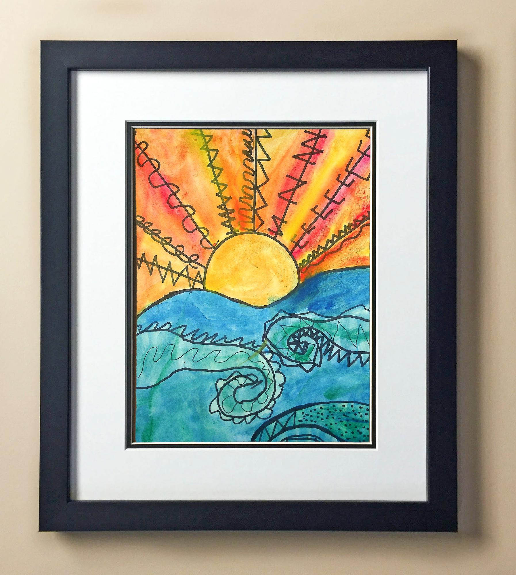 Included with the purchase is the Students Artwork, Frame, double matboard, shatter proof plexiglass, and a ready to hang backerboard with turnbuttons