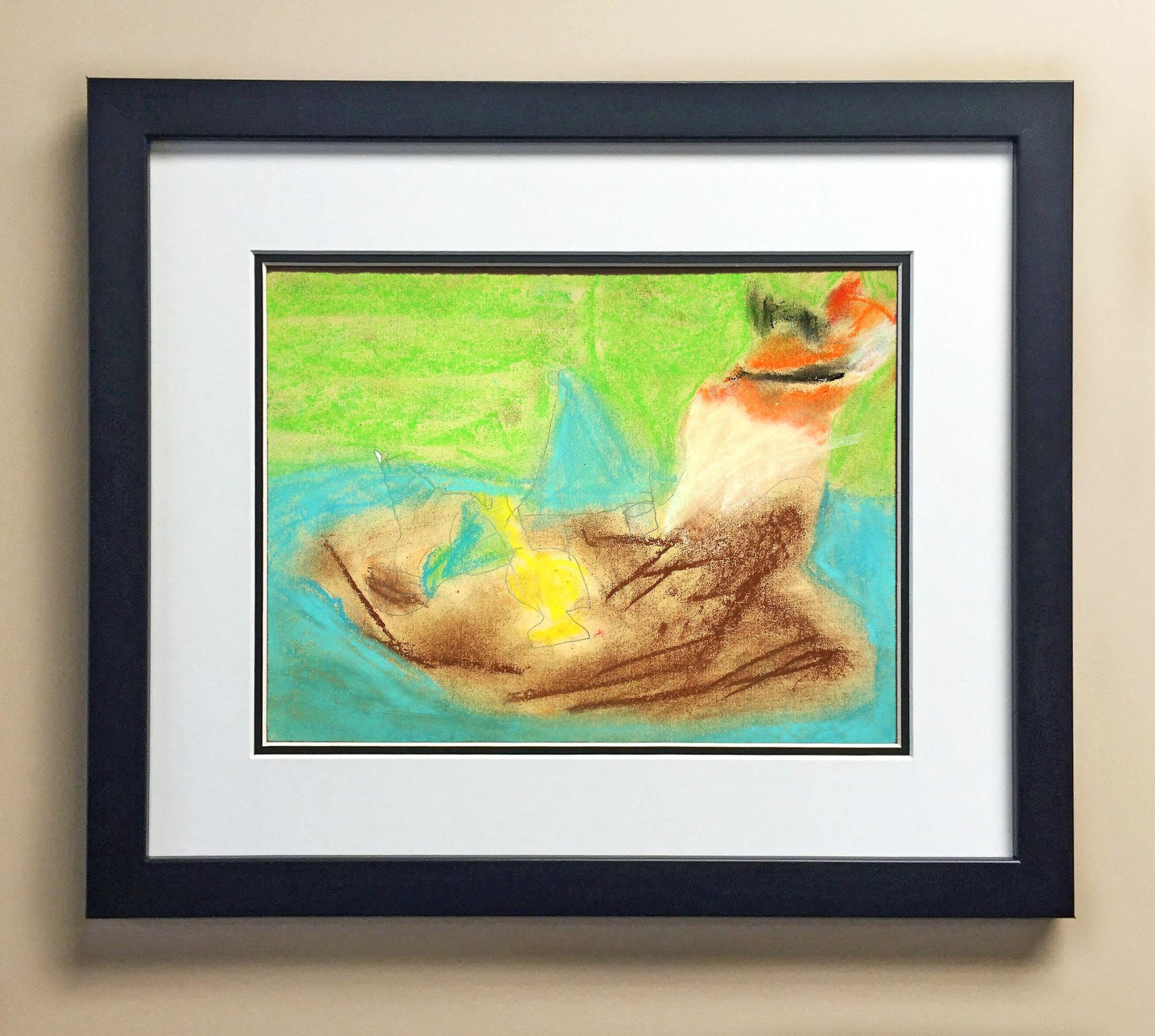 Included with the purchase is the Students Artwork, Frame, double matboard, shatter proof plexiglass, and a ready to hang backerboard with turnbuttons