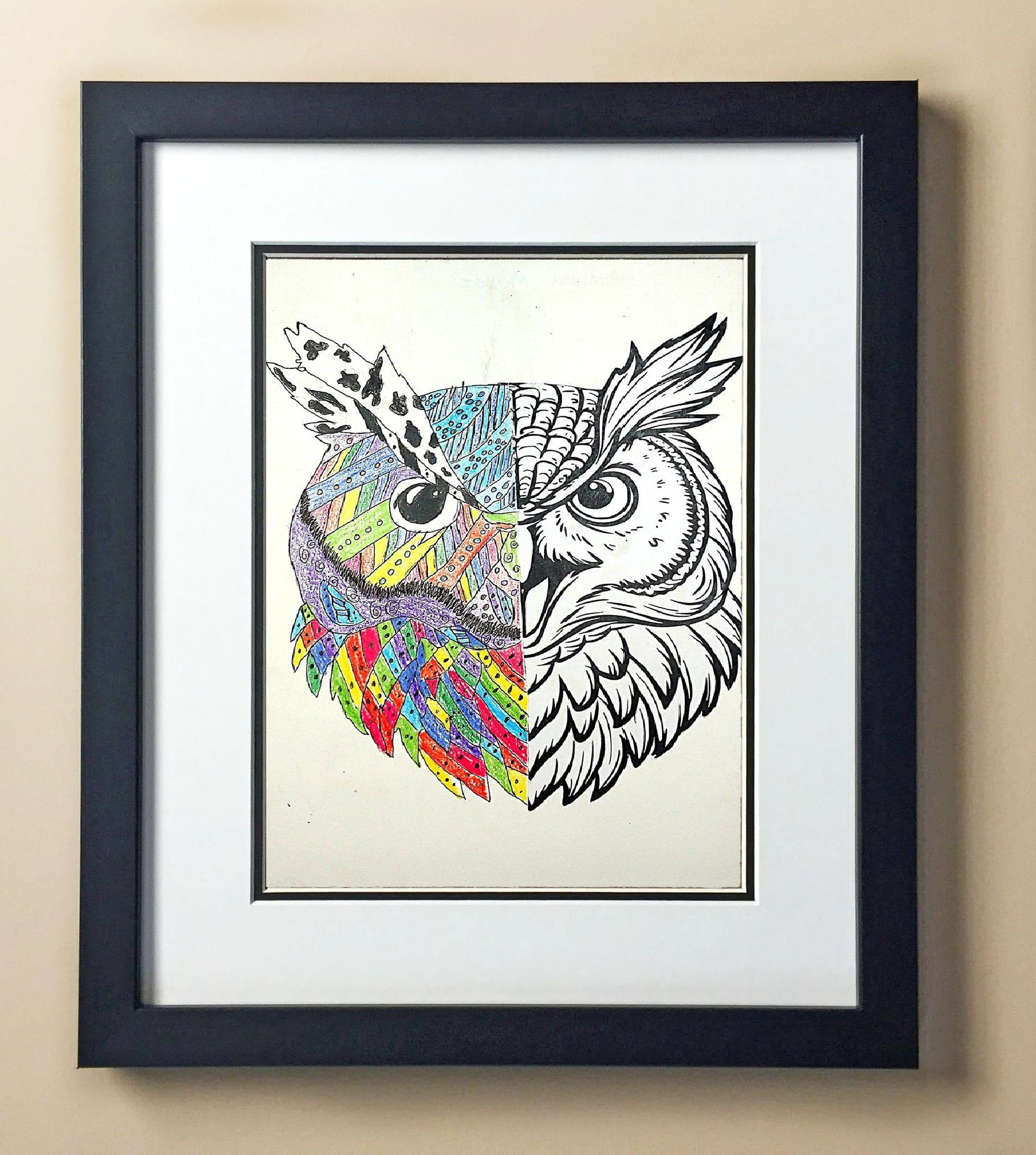 Included with the purchase is the Students Artwork, Frame, double matboard, shatter proof plexiglass, and a ready to hang backerboard with turnbuttons