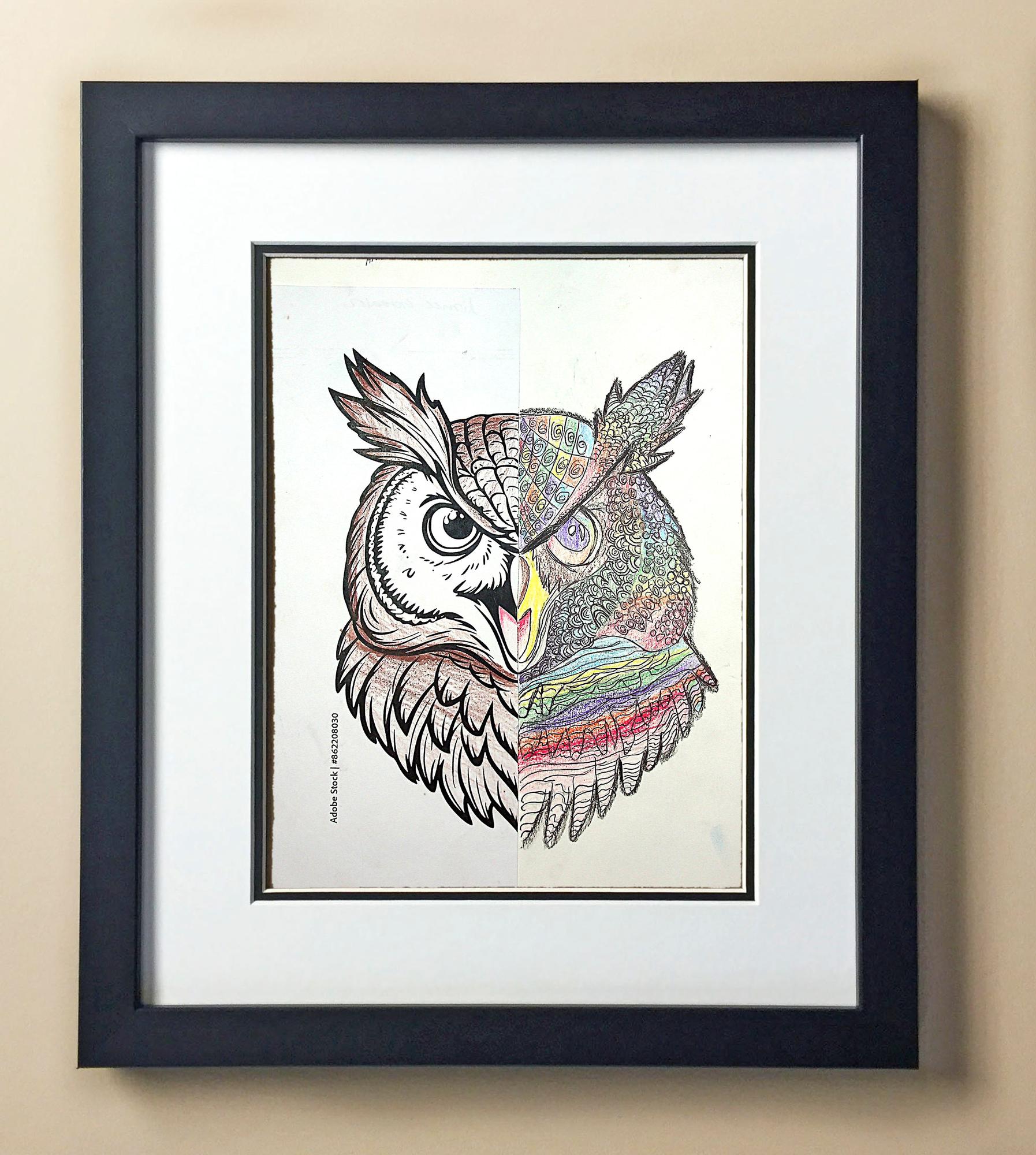 Included with the purchase is the Students Artwork, Frame, double matboard, shatter proof plexiglass, and a ready to hang backerboard with turnbuttons