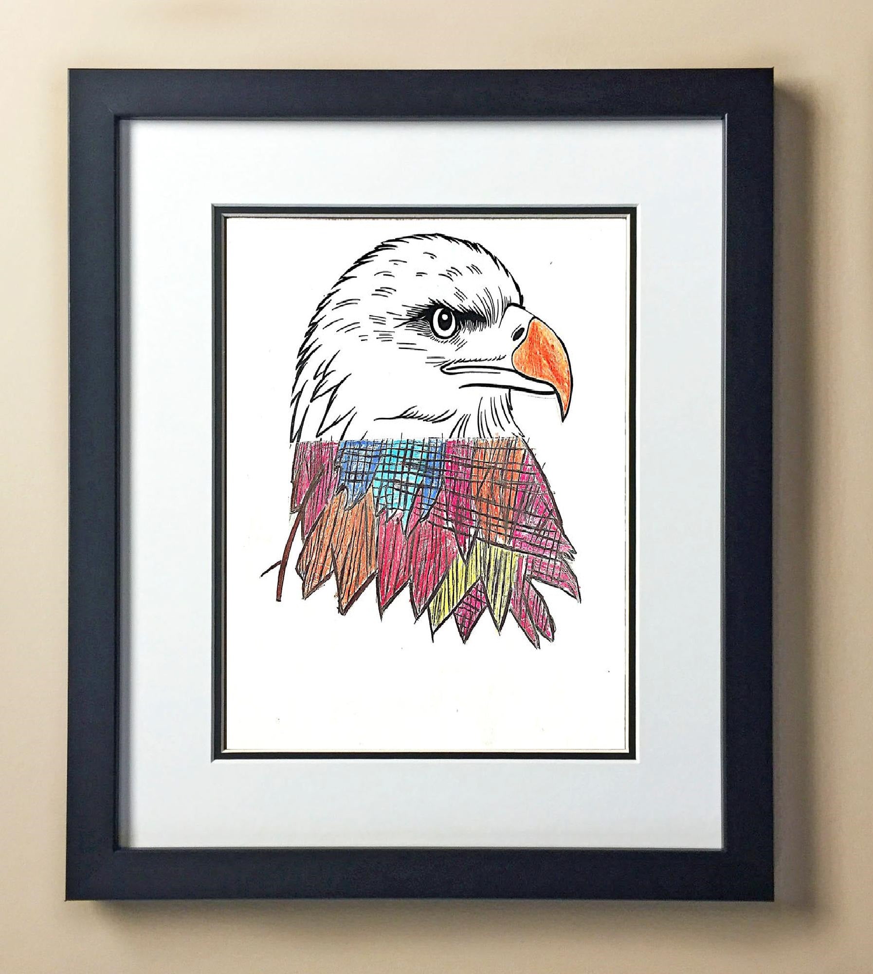 Included with the purchase is the Students Artwork, Frame, double matboard, shatter proof plexiglass, and a ready to hang backerboard with turnbuttons