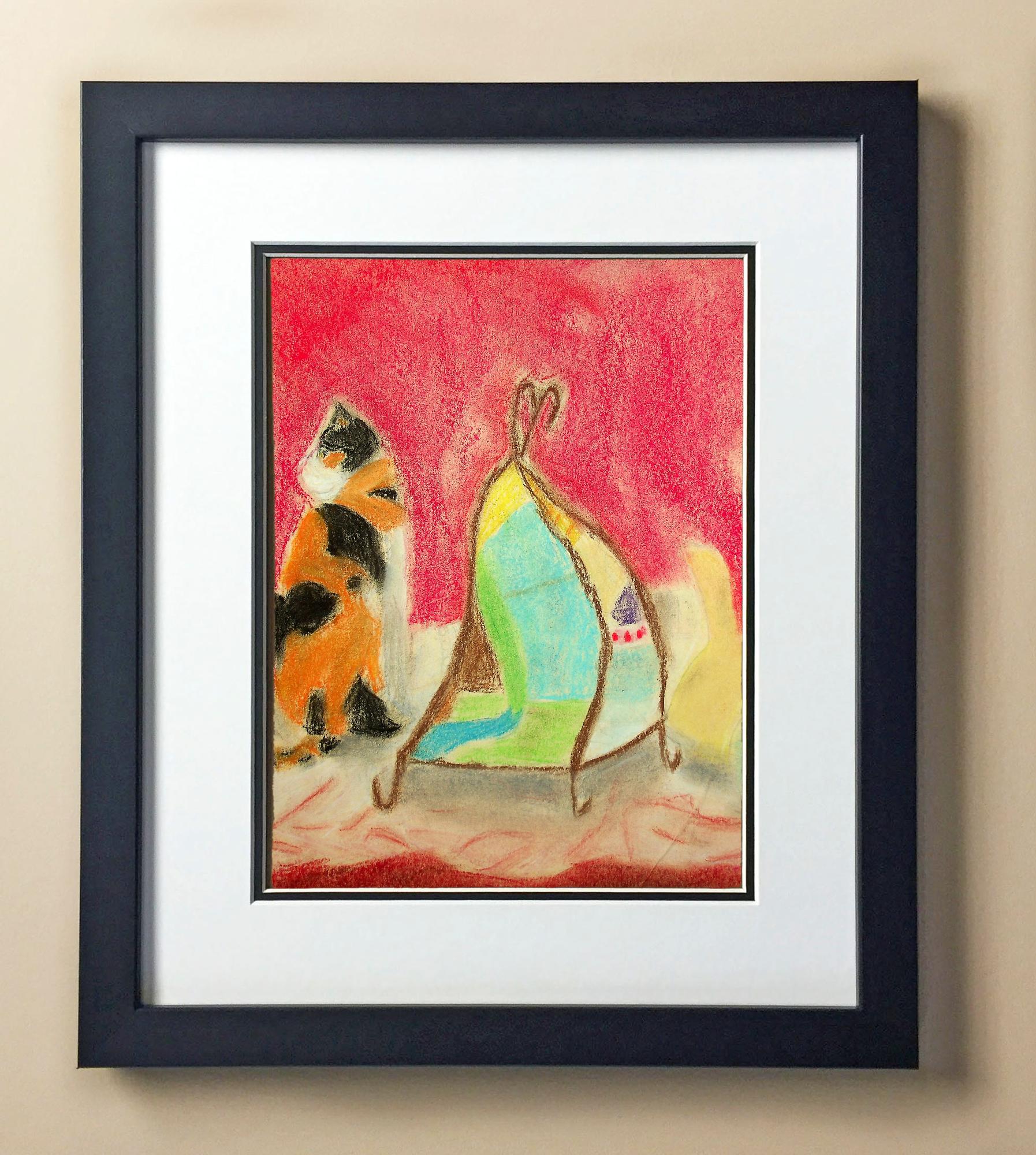 Included with the purchase is the Students Artwork, Frame, double matboard, shatter proof plexiglass, and a ready to hang backerboard with turnbuttons