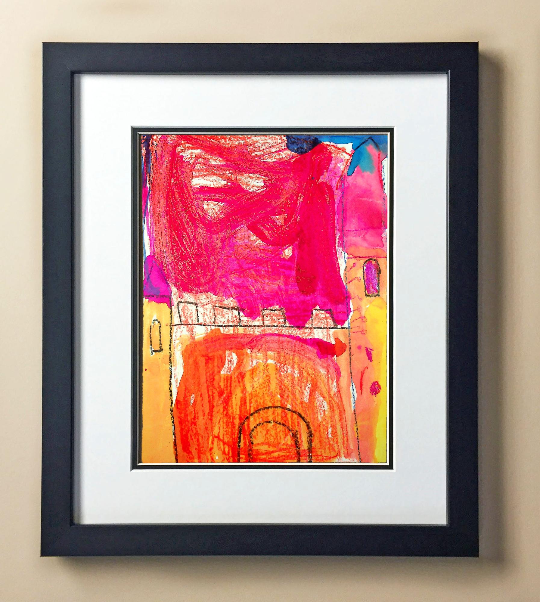 Included with the purchase is the Students Artwork, Frame, double matboard, shatter proof plexiglass, and a ready to hang backerboard with turnbuttons