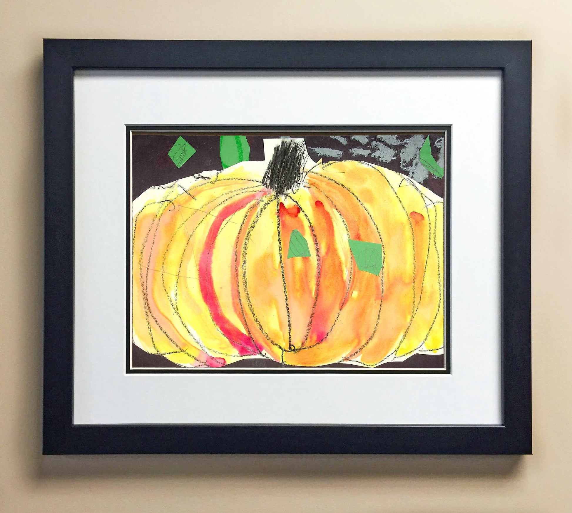 Included with the purchase is the Students Artwork, Frame, double matboard, shatter proof plexiglass, and a ready to hang backerboard with turnbuttons