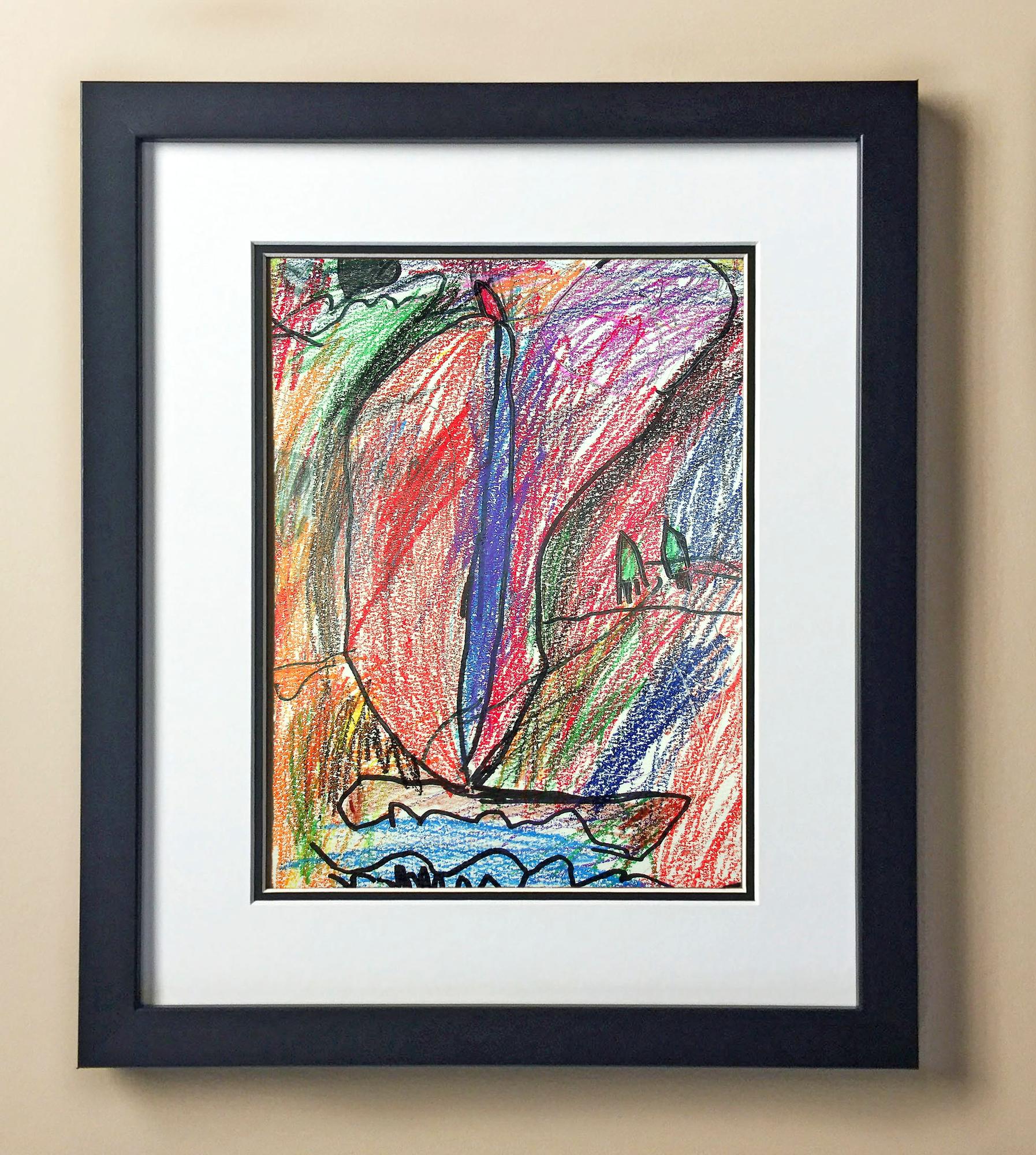 Included with the purchase is the Students Artwork, Frame, double matboard, shatter proof plexiglass, and a ready to hang backerboard with turnbuttons