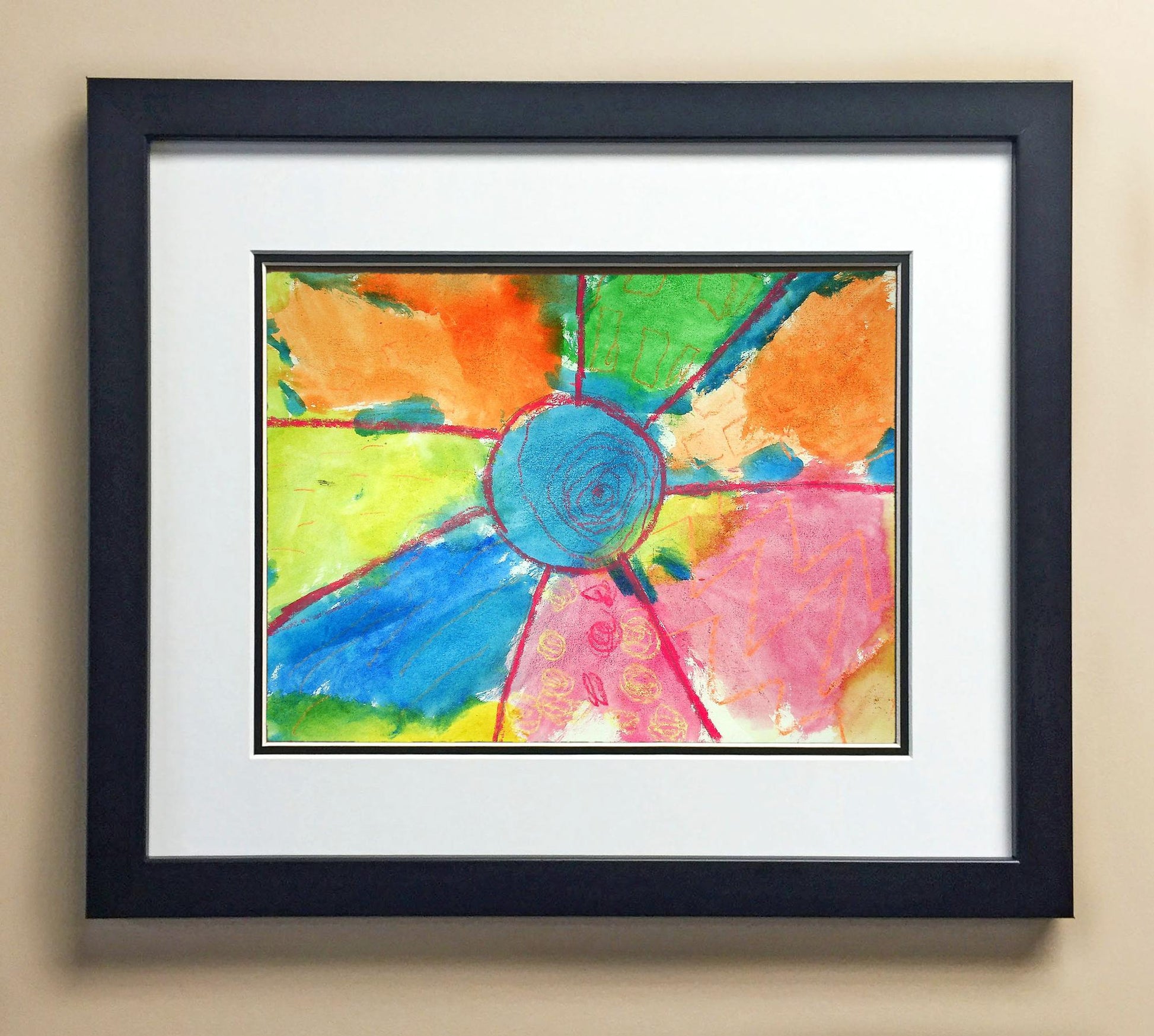 Included with the purchase is the Students Artwork, Frame, double matboard, shatter proof plexiglass, and a ready to hang backerboard with turnbuttons