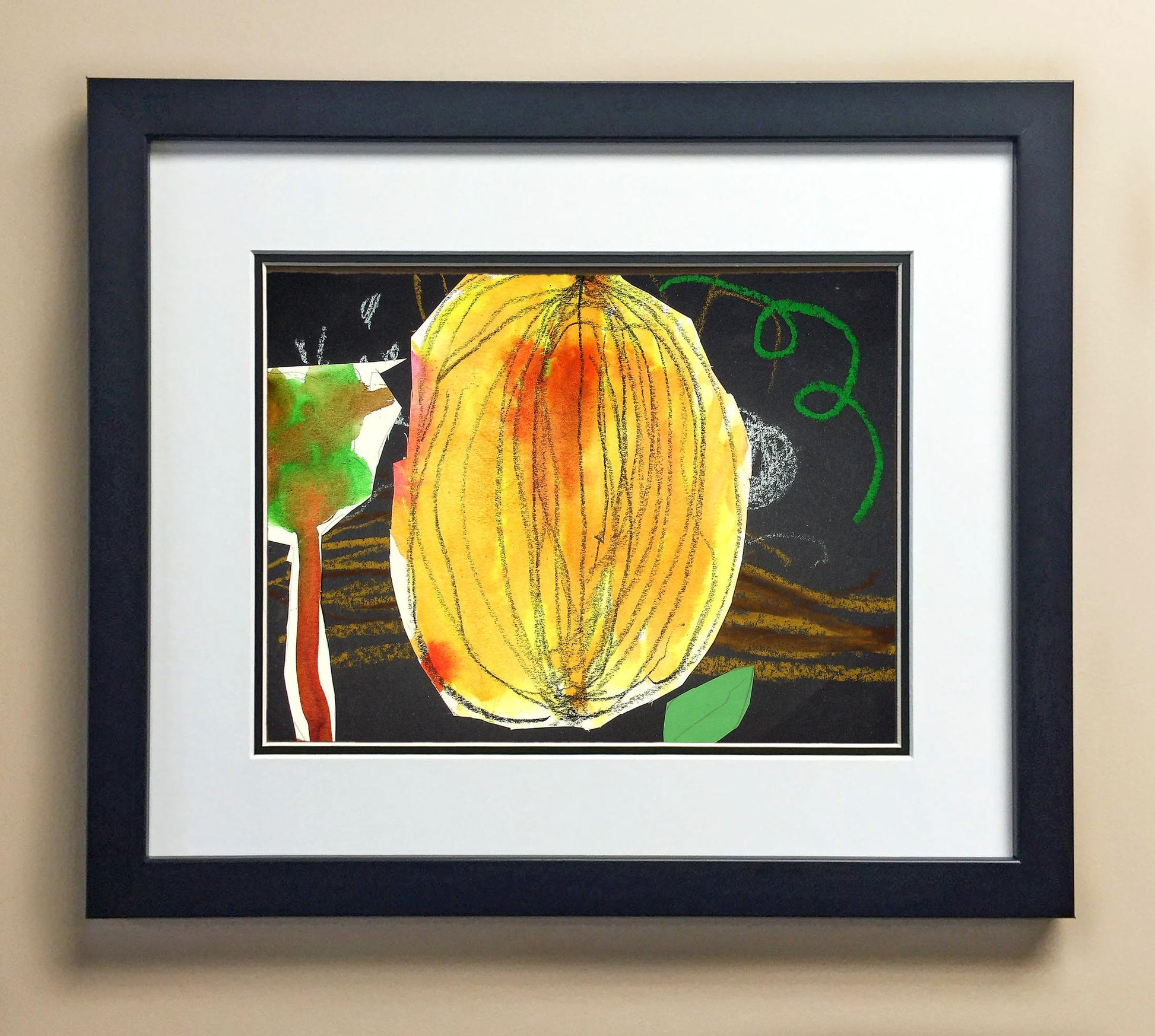 Included with the purchase is the Students Artwork, Frame, double matboard, shatter proof plexiglass, and a ready to hang backerboard with turnbuttons
