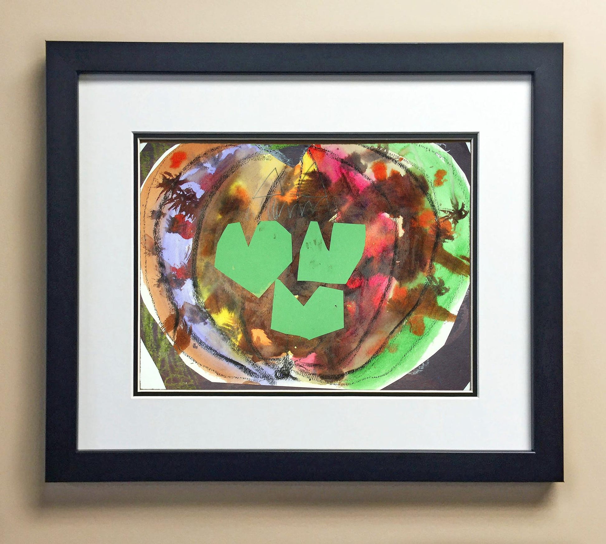 Included with the purchase is the Students Artwork, Frame, double matboard, shatter proof plexiglass, and a ready to hang backerboard with turnbuttons