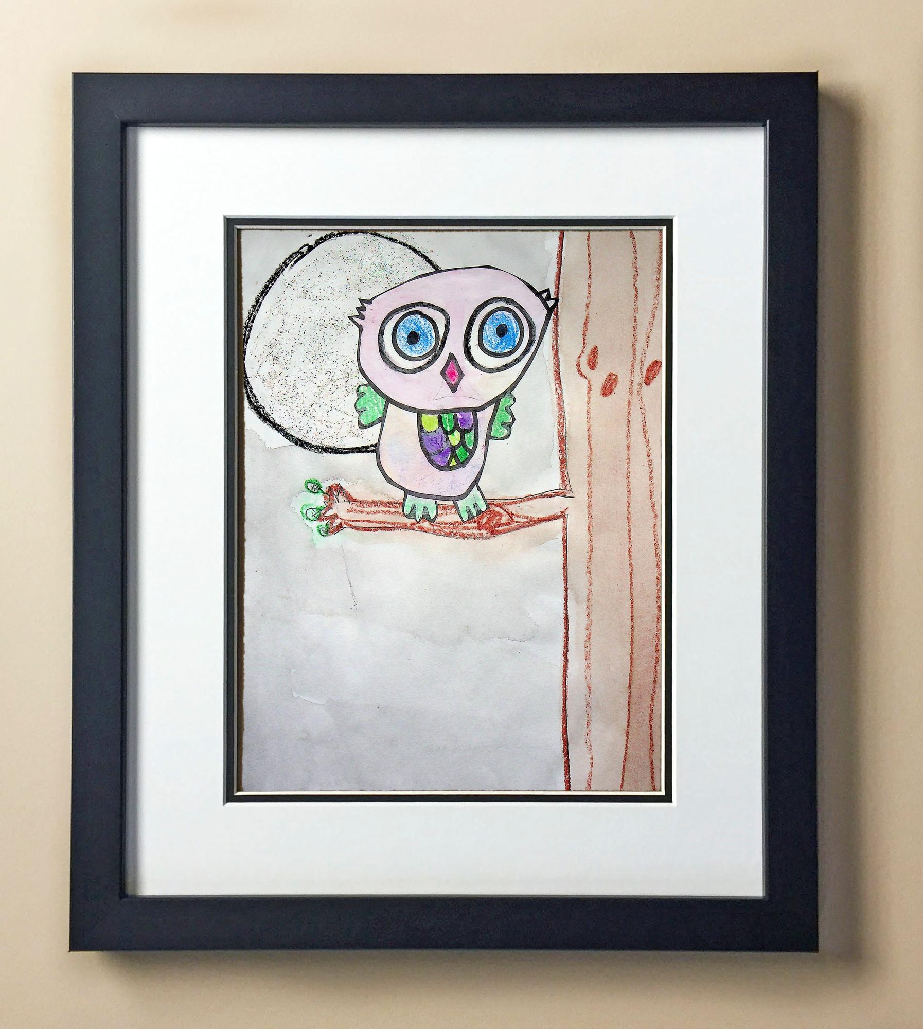 Included with the purchase is the Students Artwork, Frame, double matboard, shatter proof plexiglass, and a ready to hang backerboard with turnbuttons