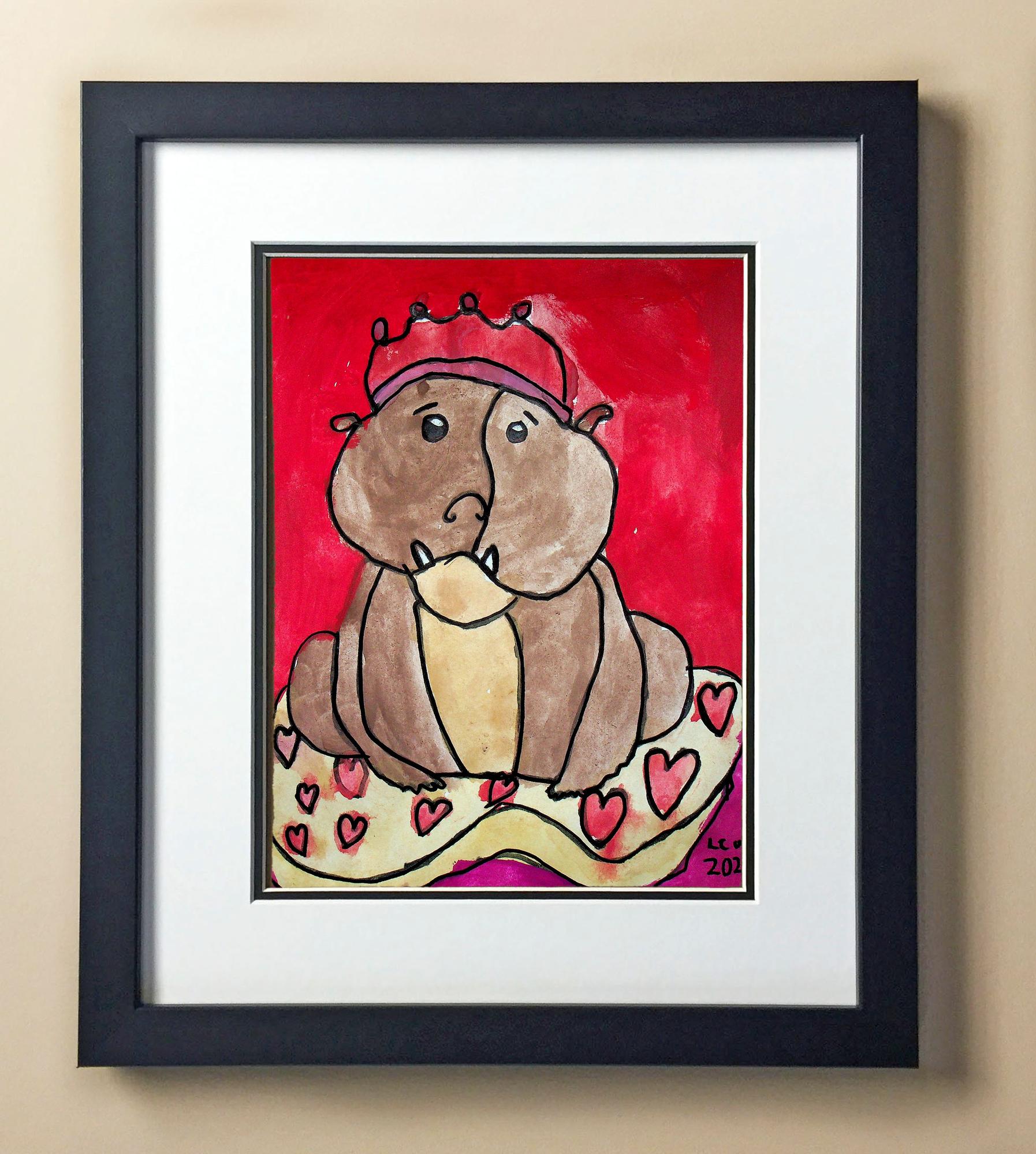Included with the purchase is the Students Artwork, Frame, double matboard, shatter proof plexiglass, and a ready to hang backerboard with turnbuttons