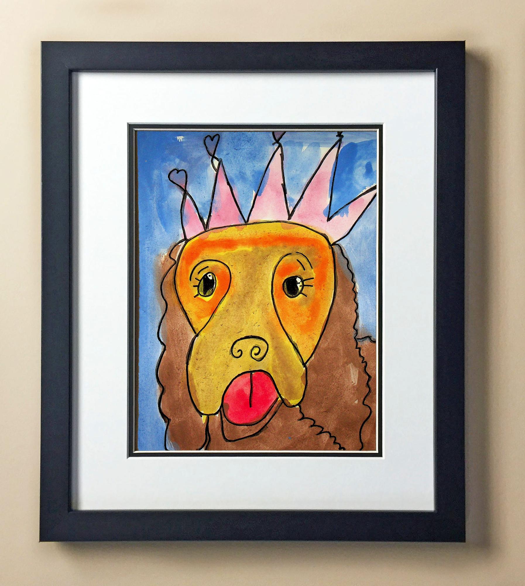 Included with the purchase is the Students Artwork, Frame, double matboard, shatter proof plexiglass, and a ready to hang backerboard with turnbuttons