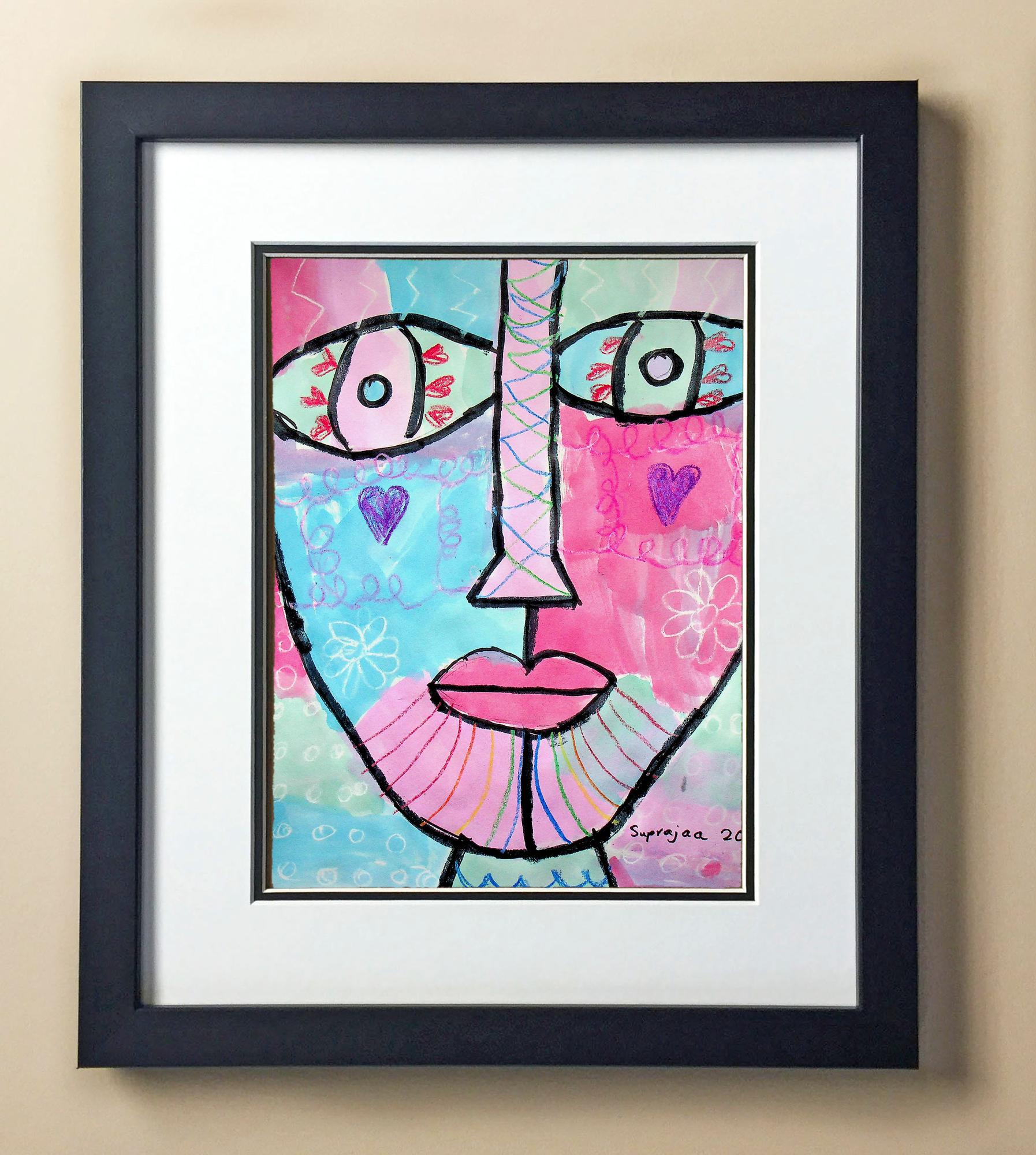 Included with the purchase is the Students Artwork, Frame, double matboard, shatter proof plexiglass, and a ready to hang backerboard with turnbuttons