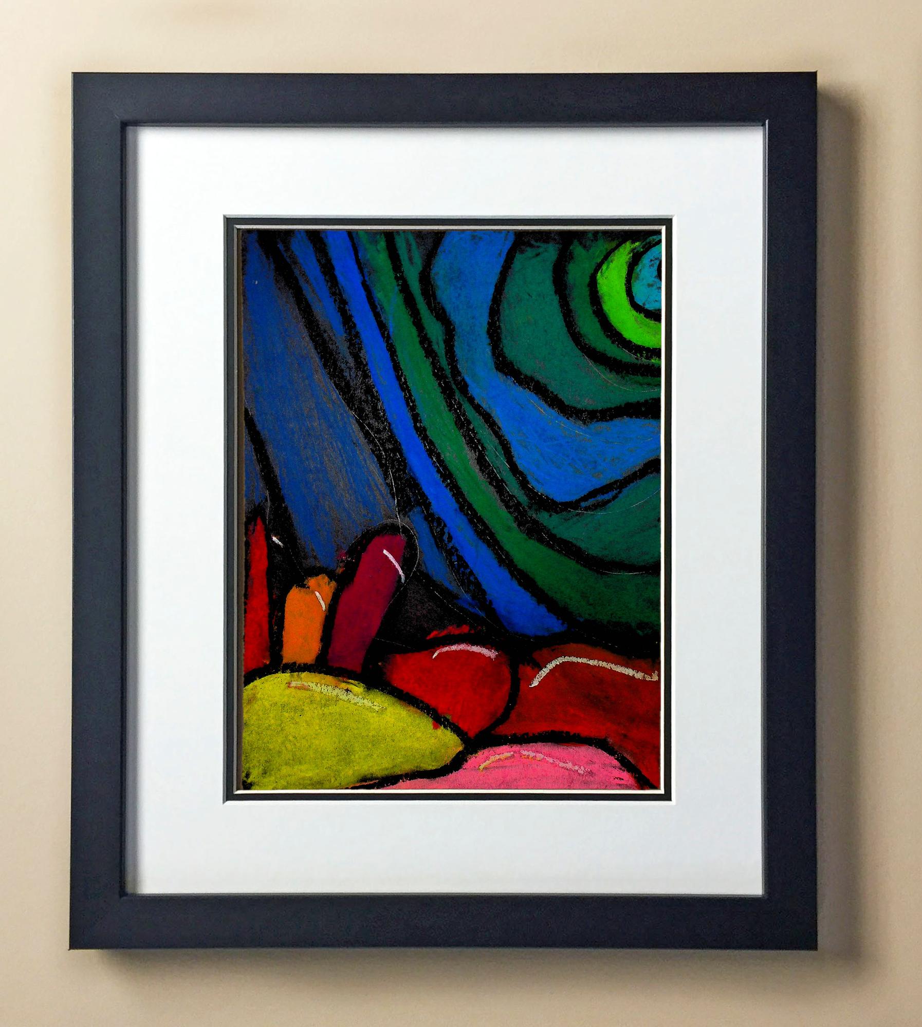 Included with the purchase is the Students Artwork, Frame, double matboard, shatter proof plexiglass, and a ready to hang backerboard with turnbuttons