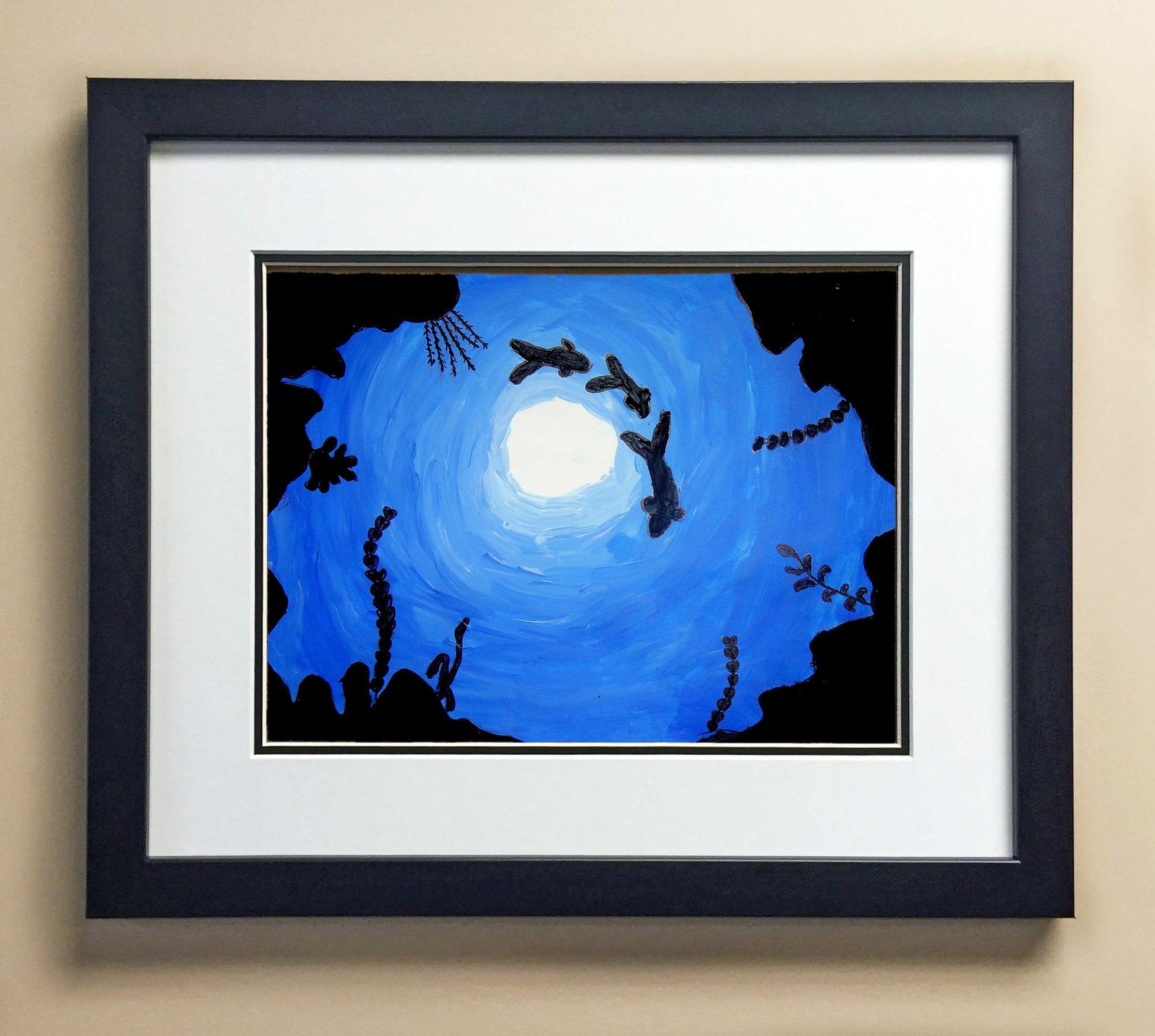 Included with the purchase is the Students Artwork, Frame, double matboard, shatter proof plexiglass, and a ready to hang backerboard with turnbuttons