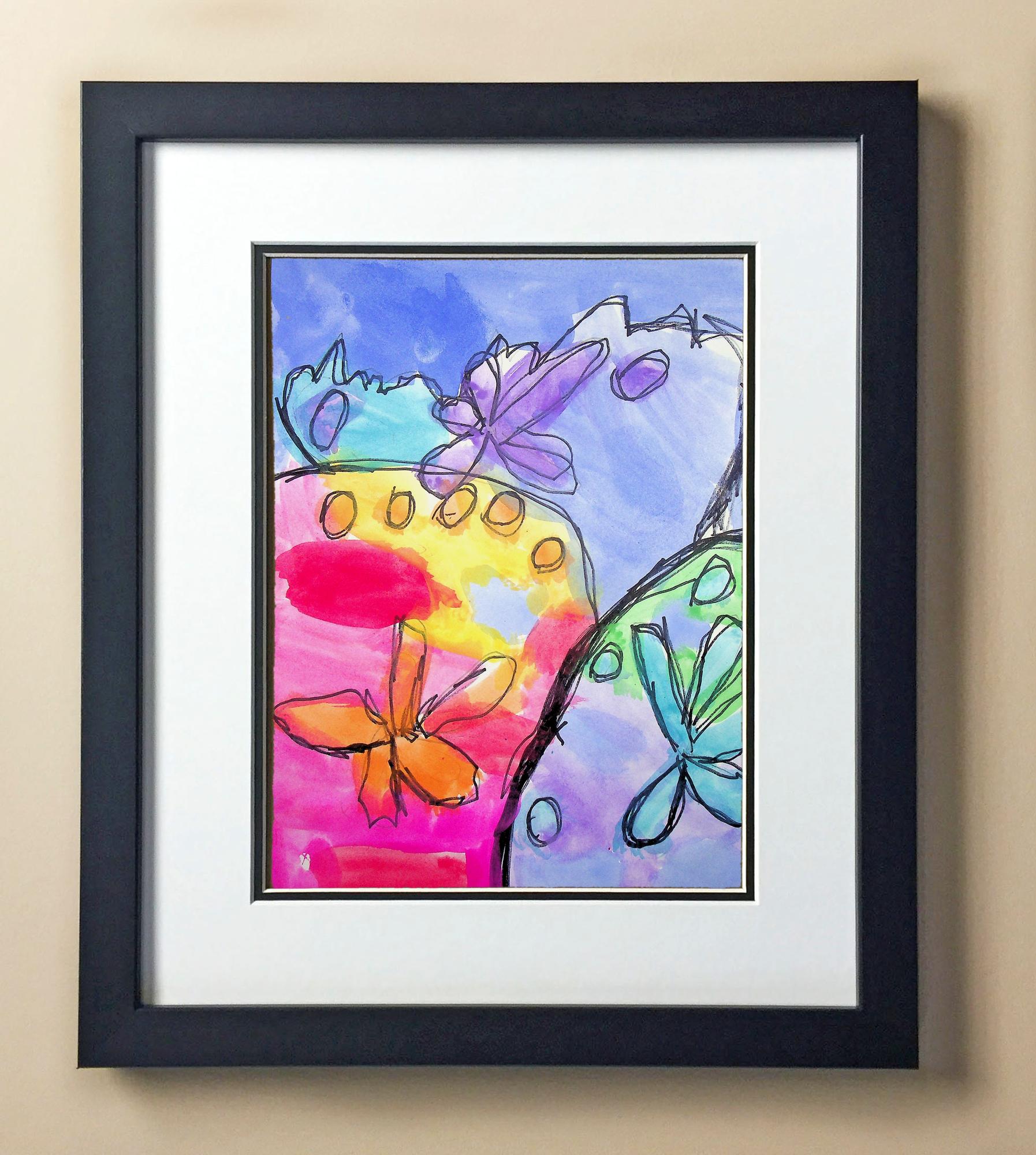 Included with the purchase is the Students Artwork, Frame, double matboard, shatter proof plexiglass, and a ready to hang backerboard with turnbuttons