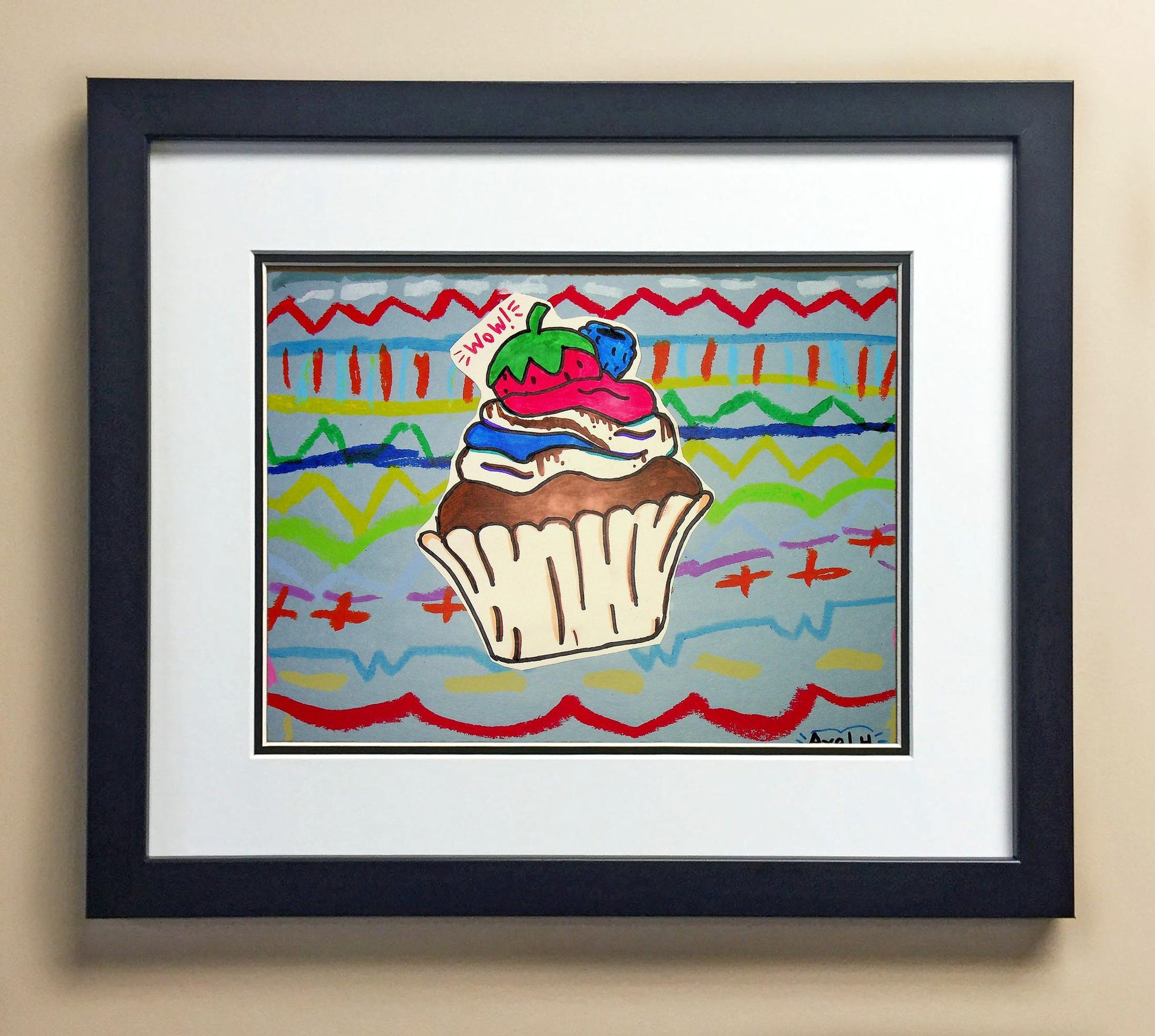 Included with the purchase is the Students Artwork, Frame, double matboard, shatter proof plexiglass, and a ready to hang backerboard with turnbuttons