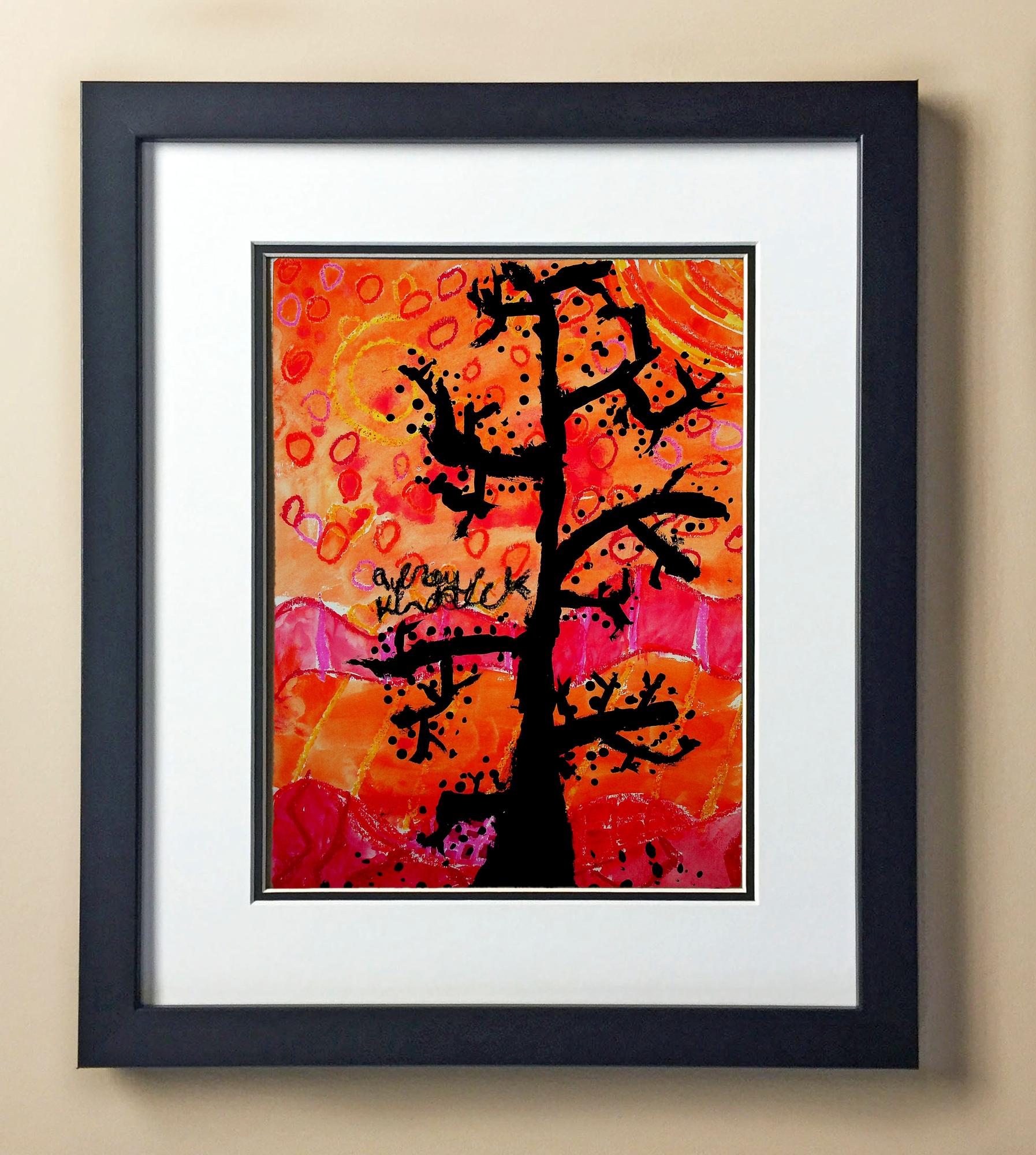 Included with the purchase is the Students Artwork, Frame, double matboard, shatter proof plexiglass, and a ready to hang backerboard with turnbuttons