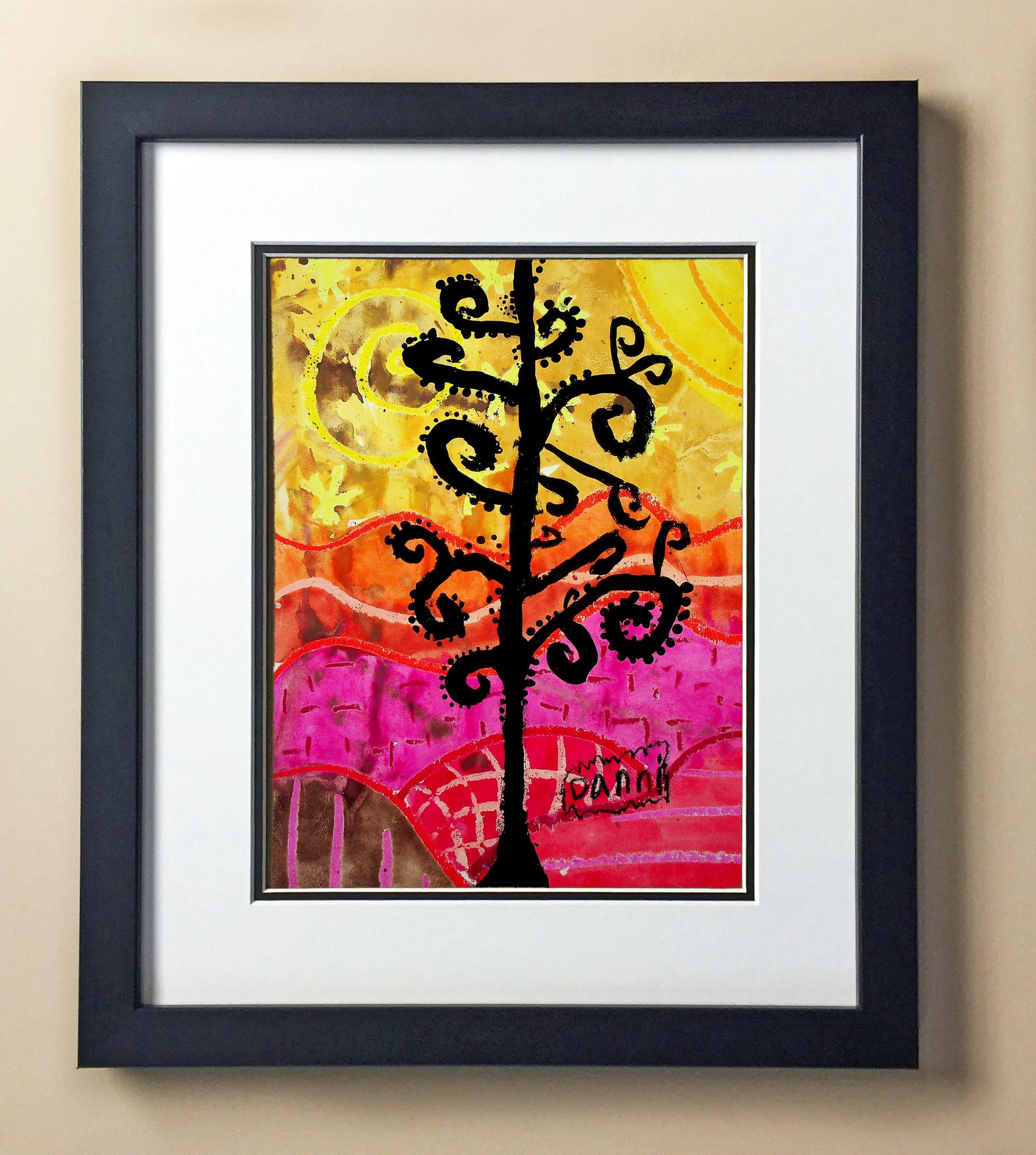 Included with the purchase is the Students Artwork, Frame, double matboard, shatter proof plexiglass, and a ready to hang backerboard with turnbuttons